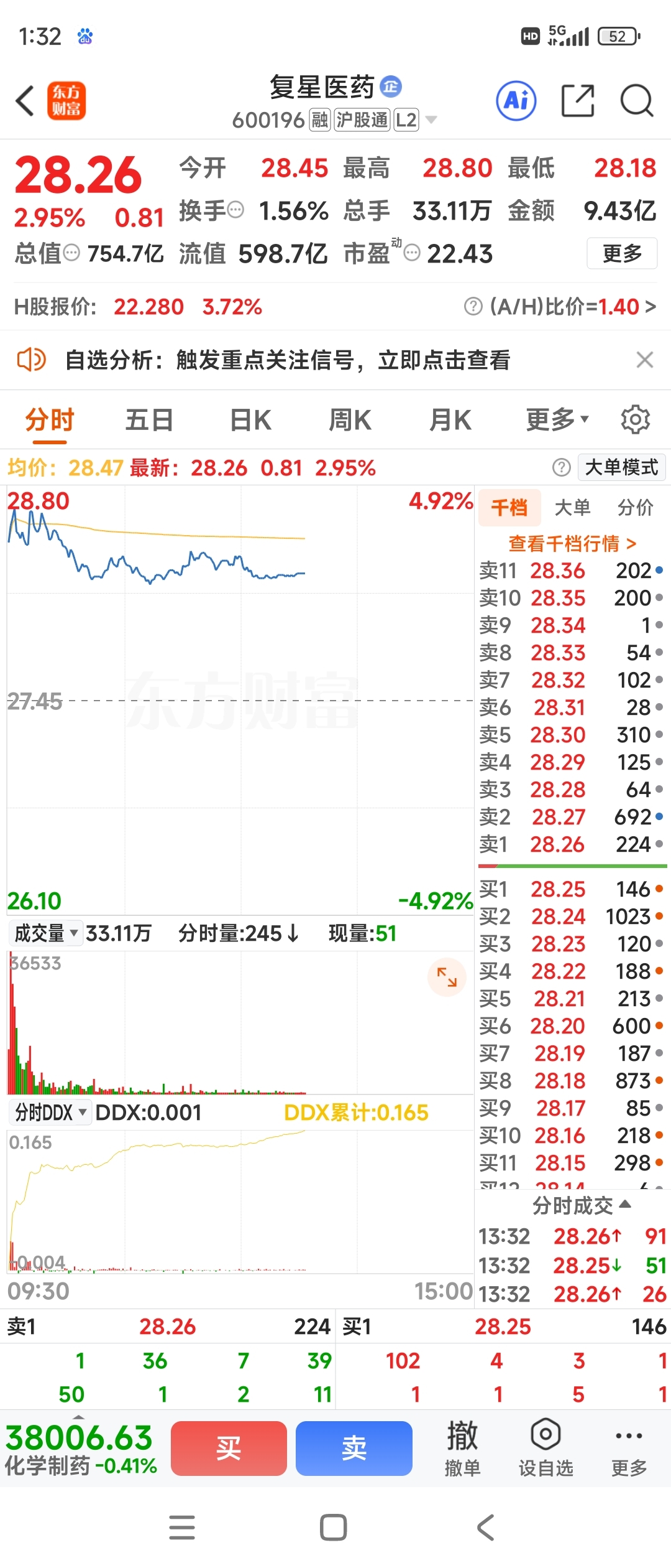 SH600196)$锁仓模式,不到54元与猪力死耗到底,自有资金,这价位拿几年怎
