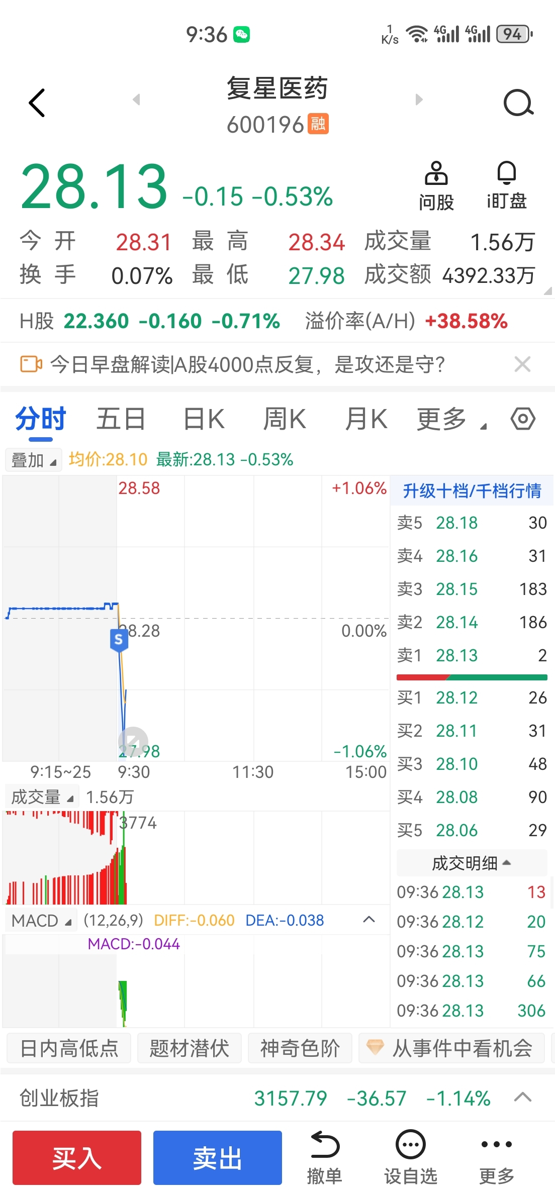 $复星医药(SH600196)$ 今天2:30以后我再买回来。看你能不能红。