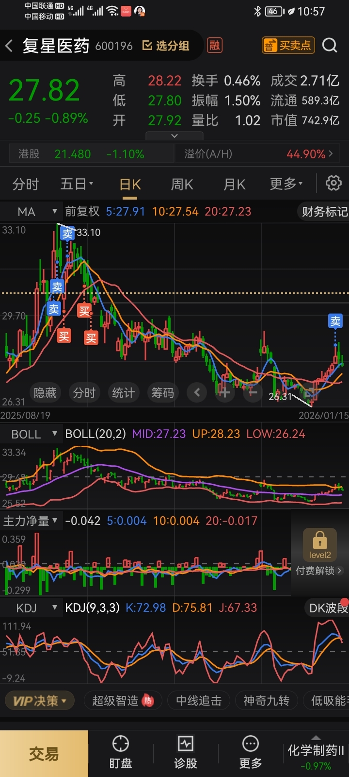 我发现,复星医药里的散户,只有我们这些穷鬼,跟庄家节奏做下T,才可以保本赚点小钱