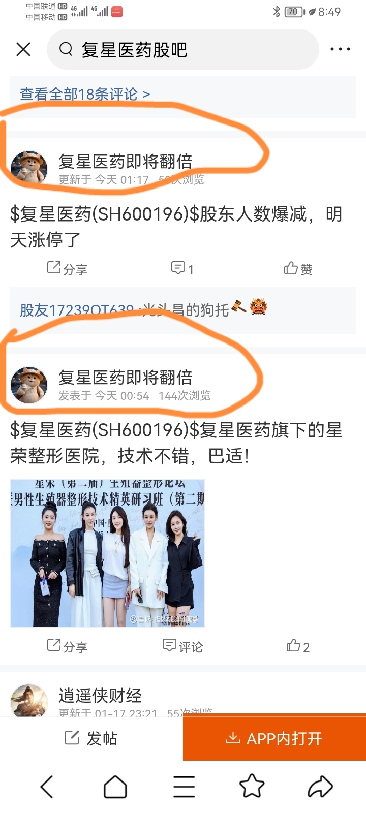 老股民逐渐抛弃复星医药了,留下的不多的,老股东在减少,新进来的股东应该也不少!!!而这个原名叫炒股养家→复星医药涨到80→复星医药反转→复星医药翻倍还一直在复星唱多,新来的注意下就成了!!他在复星唱多五年多时间了!!!