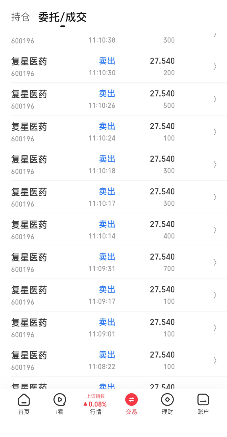 $复星医药(SH600196)$ 今天卖了一点出去,怎么全是小单在接?