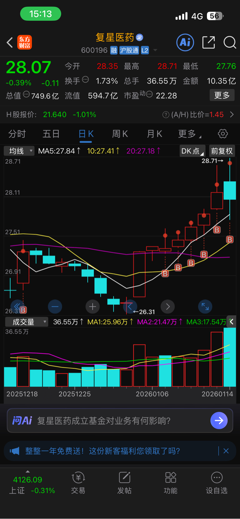 $复星医药(SH600196)$ 跌破26.26就止损,说到做到