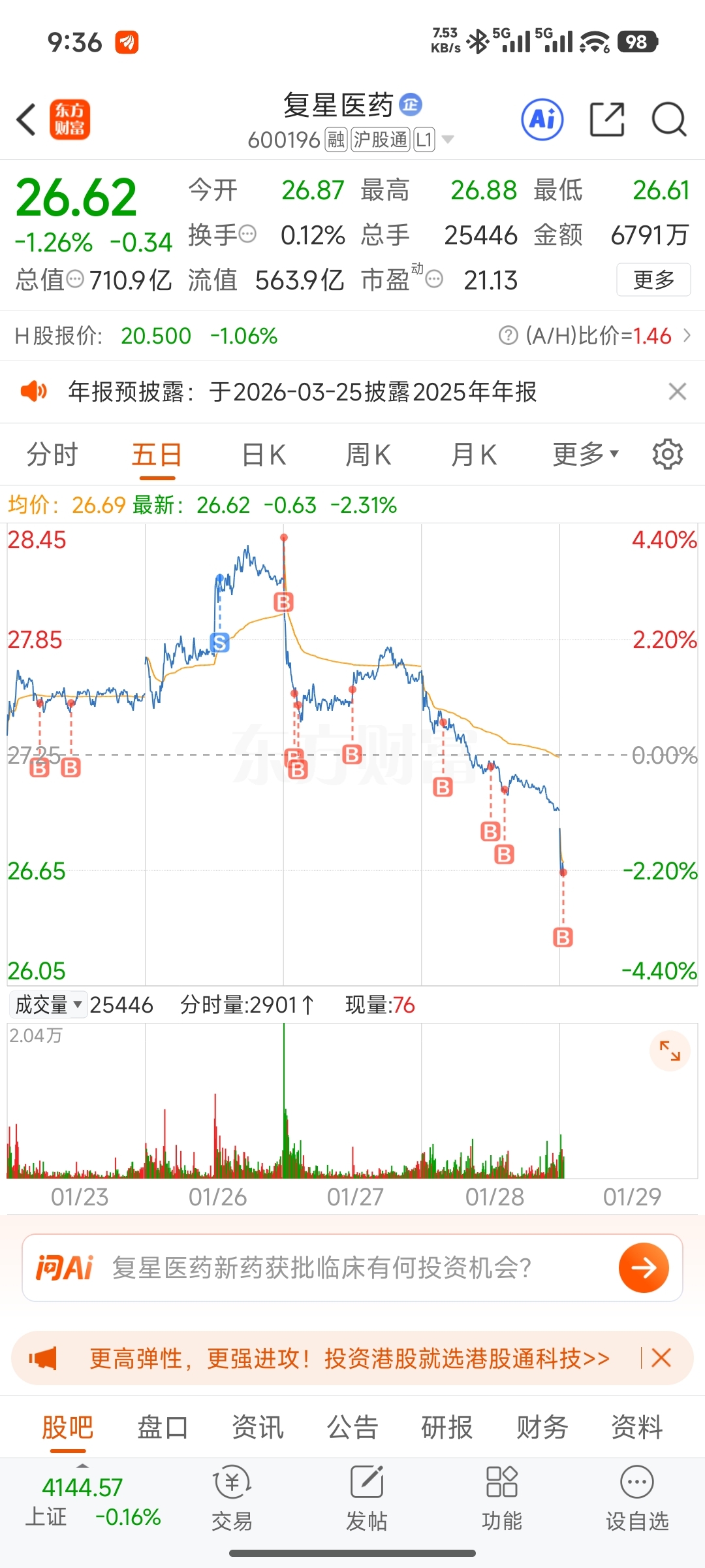 $复星医药(SH600196)$ 每次下杀都是机会。每跌1%加1w