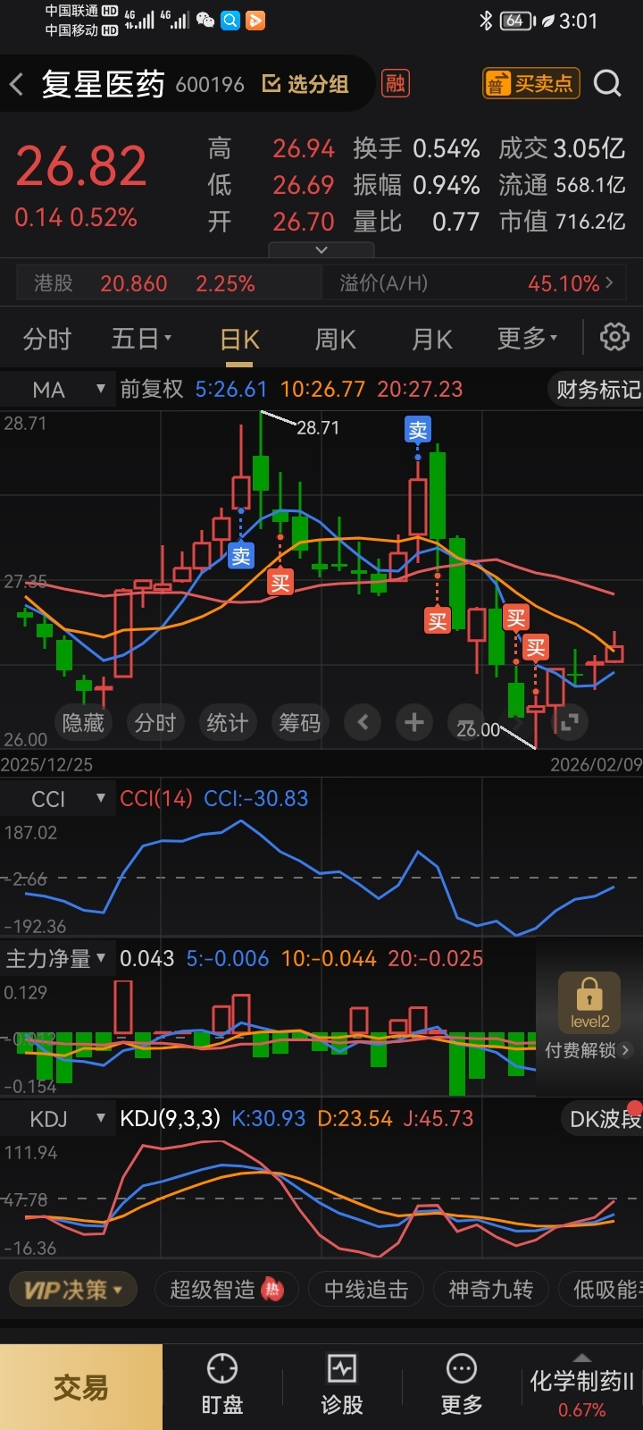 敌不动,我不动,继续观望,我坚信春节前会到27元的