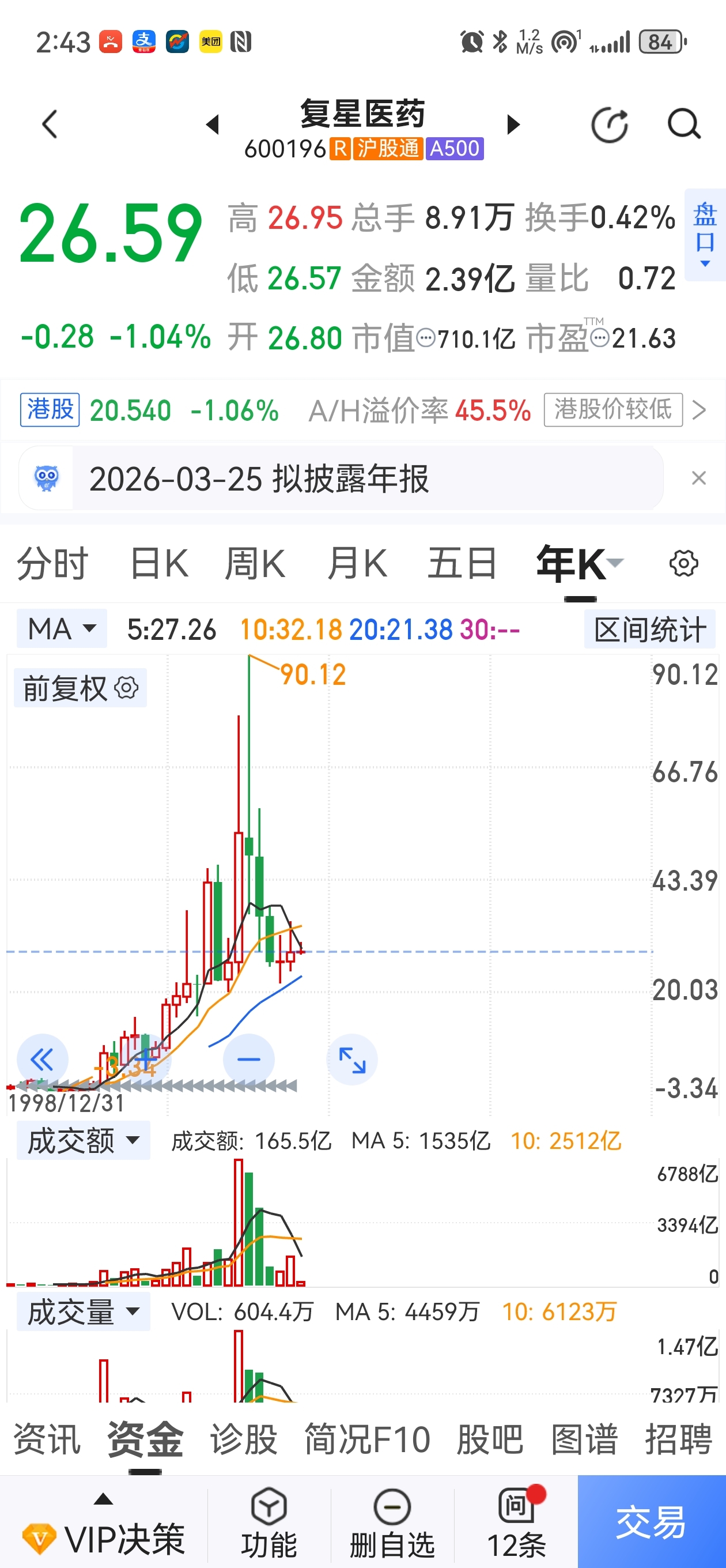 $复星医药(SH600196)$ 复星跌了三年,横三年,今年基本还是横盘