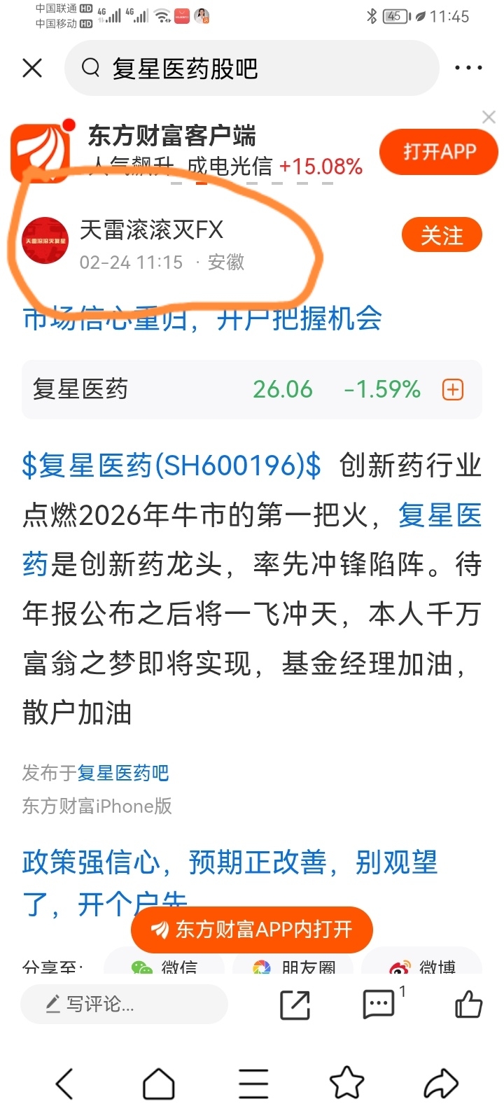 温馨提示: 1.根据《证券法》规定,禁止编造、传播虚假信息或者误导性信息,扰乱证券市场;2.用户在本社区发表的所有资料、言论等仅代表个人观点,与本网站立场无关,不对您构成任何投资建议。用户应基于自己的独立判断,自行决定证券投资并承担相应风险。《东方财富社区管理规定》