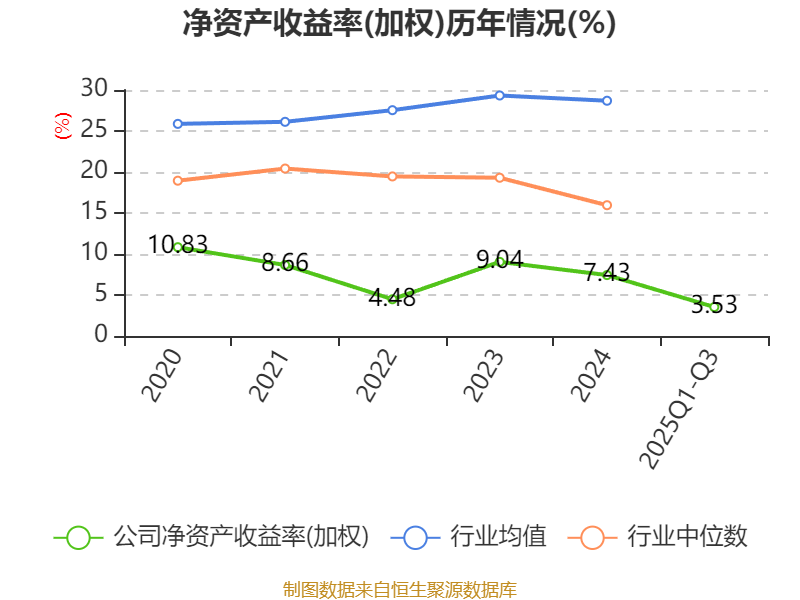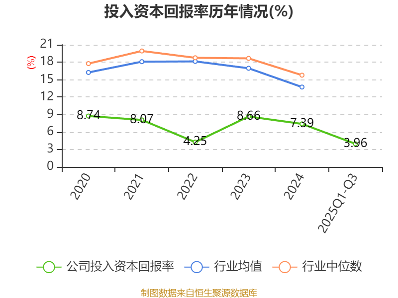 盈利能力方面, 2025年前三季度公司加权平均净资产收益率为3.53%,同比下降2.76个百分点。公司2025年前三季度投入资本回报率为3.96%,较上年同期下降2.07个百分点。