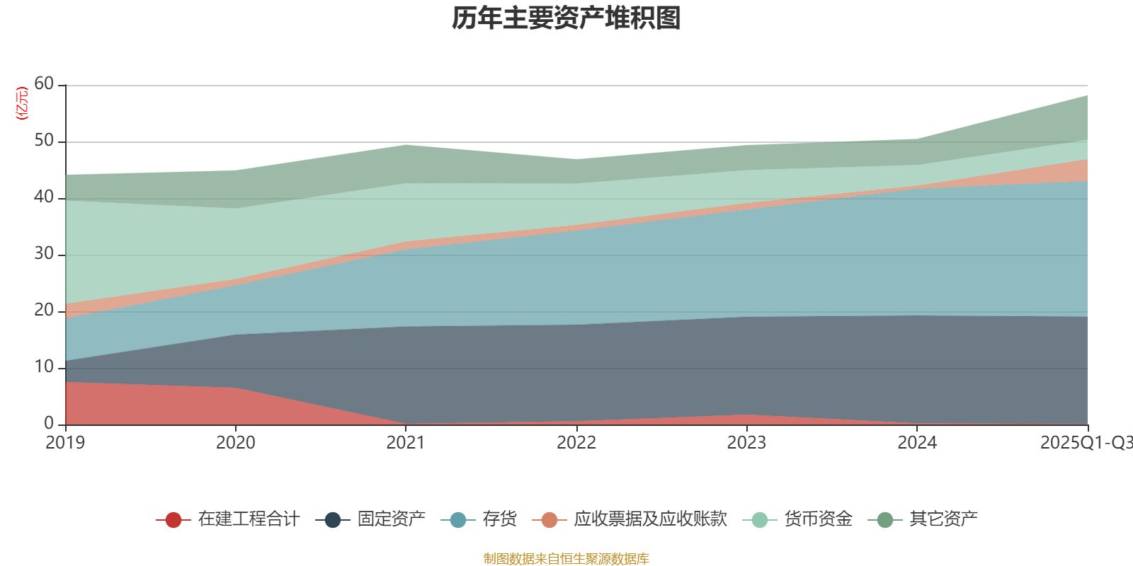 资产重大变化方面,截至2025年三季度末,公司应收票据及应收账款较上年末增加645.64%,占公司总资产比重上升5.63个百分点;固定资产较上年末减少0.12%,占公司总资产比重下降5.04个百分点;存货较上年末增加6.86%,占公司总资产比重下降3.25个百分点;其他流动资产较上年末增加259.4%,占公司总资产比重上升2.32个百分点。