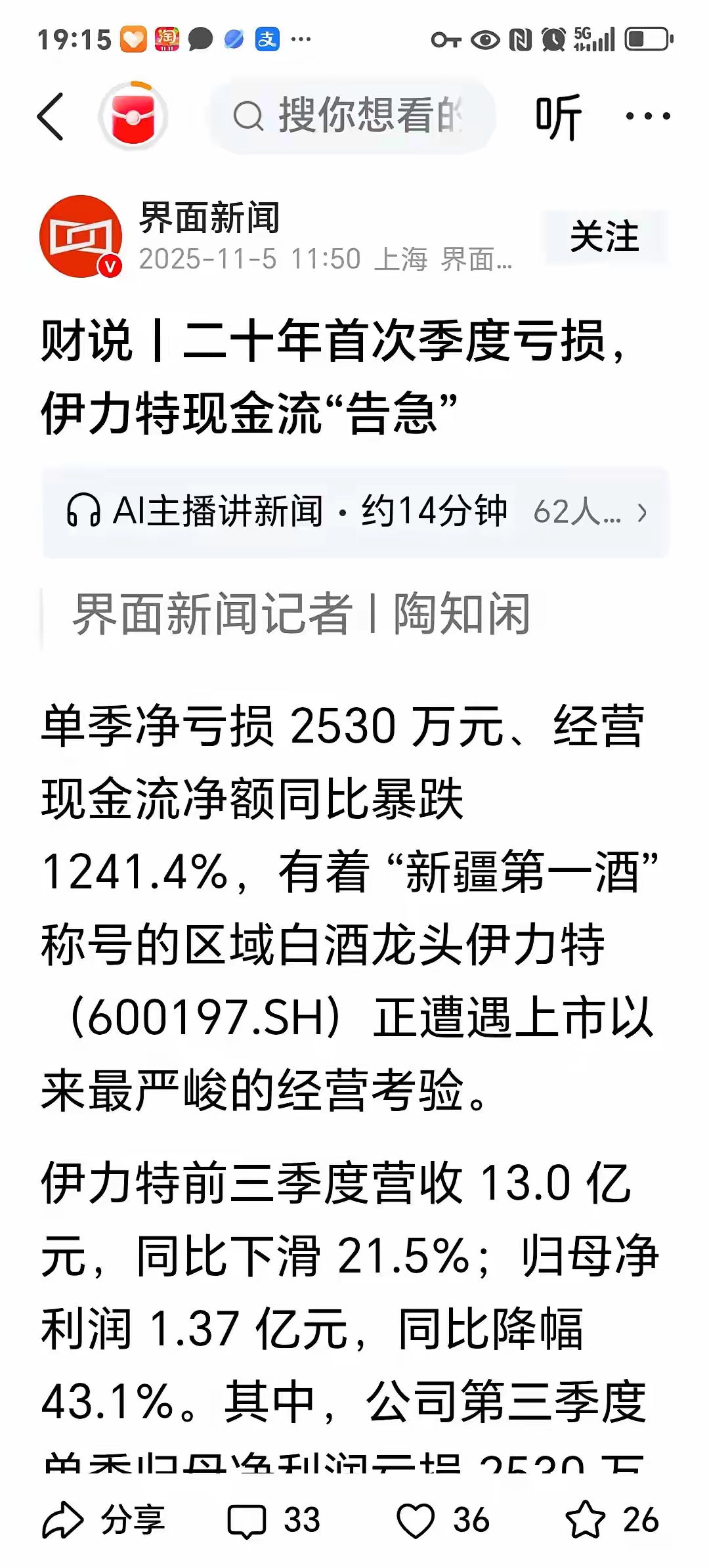 $伊力特(SH600197)$