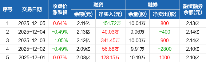 伊力特:融资净偿还151.72万元,融资余额2.11亿元(12-05)