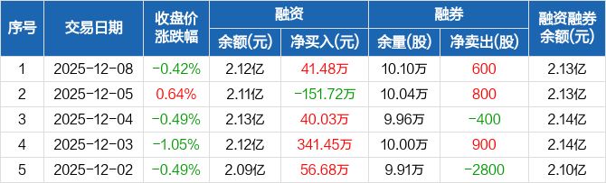 伊力特:融资净买入41.48万元,融资余额2.12亿元(12-08)