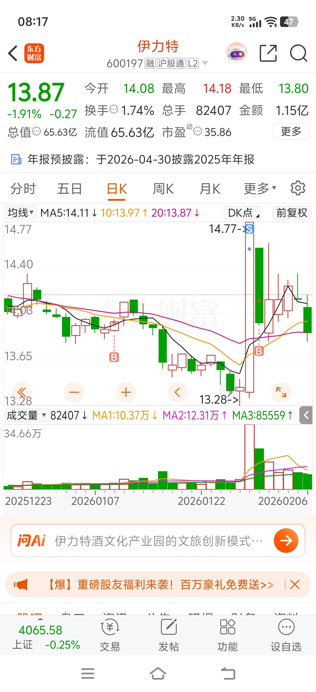 $伊力特(SH600197)$ 买回来第二天没有跑
