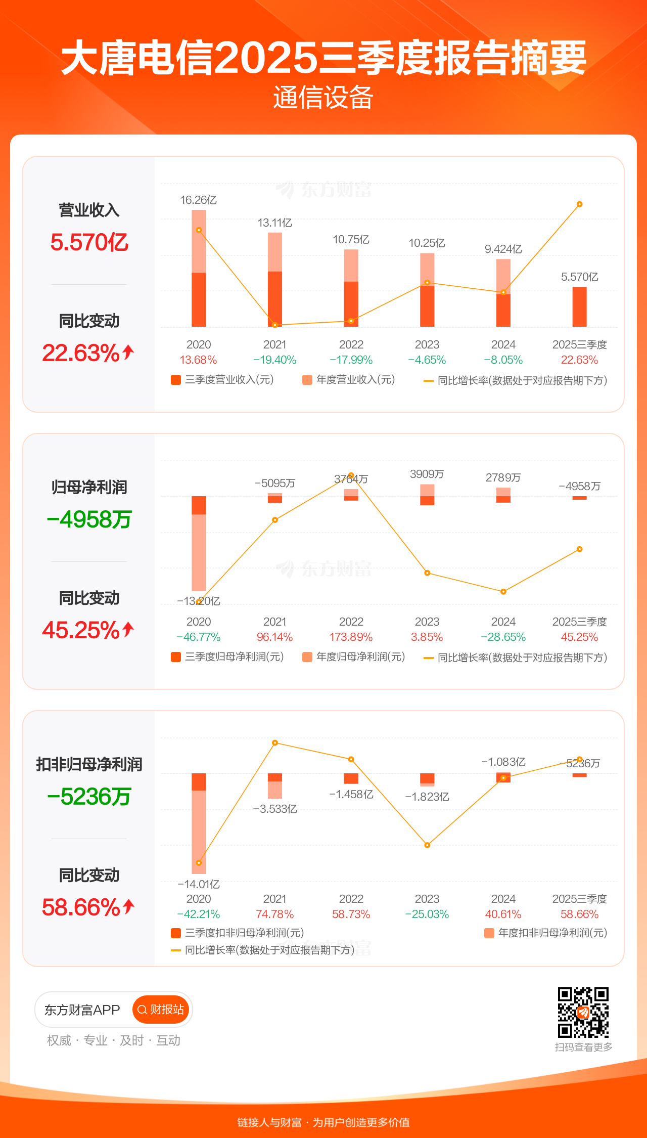 图解财报:大唐电信前三季归母净利润-4958.02万元,上年同期-9055.41万元