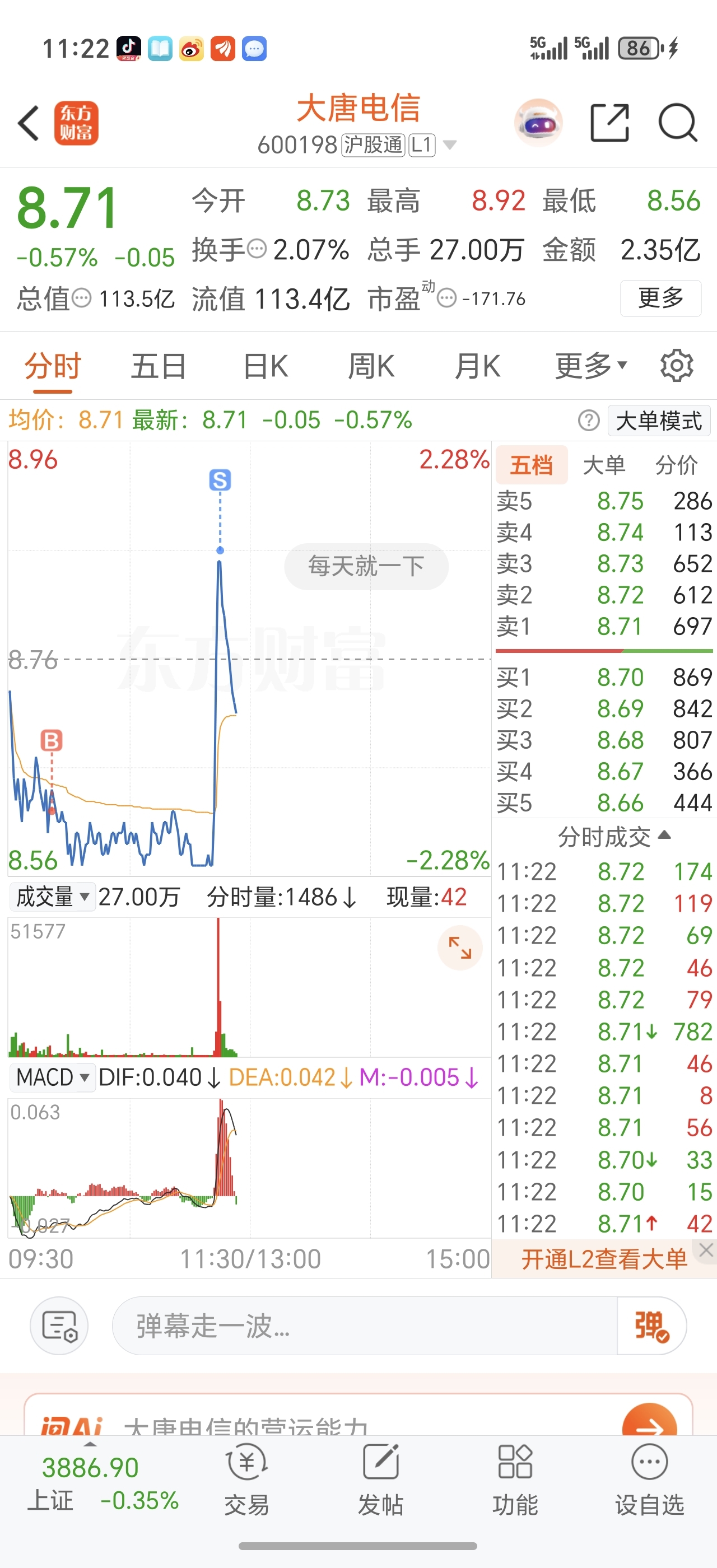 $大唐电信(SH600198)$ 哈哈,每天跟着主力zuot,太爽了