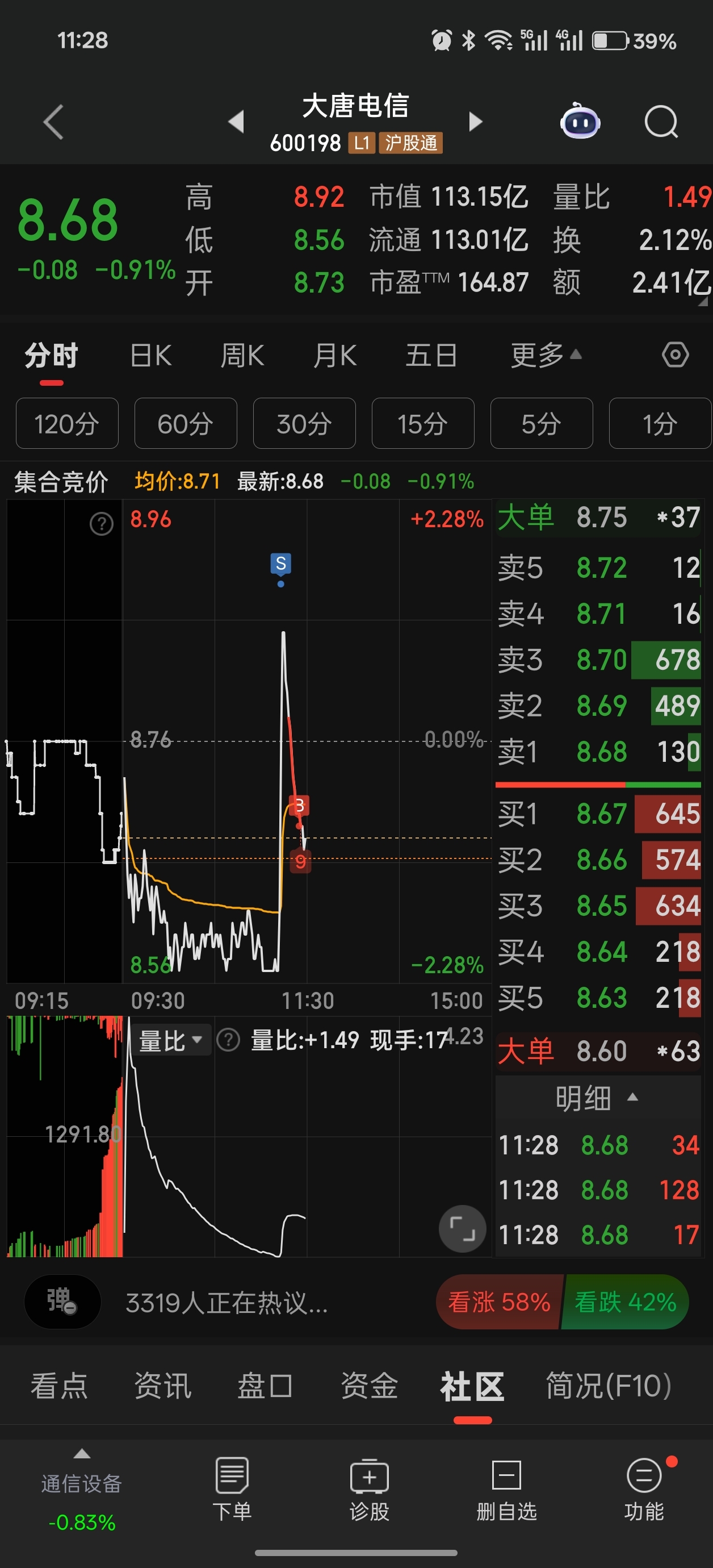 $大唐电信(SH600198)$ 让我们嗨起来好么