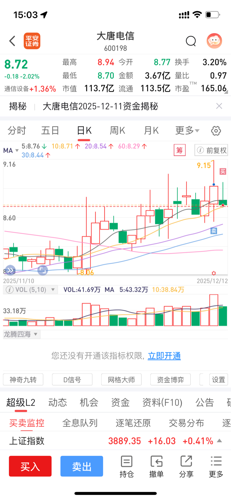 $大唐电信(SH600198)$ 不知道今天是不是大聪明,又干进去了,这段时间一直沿着10日线往上走,因该会有一波。
