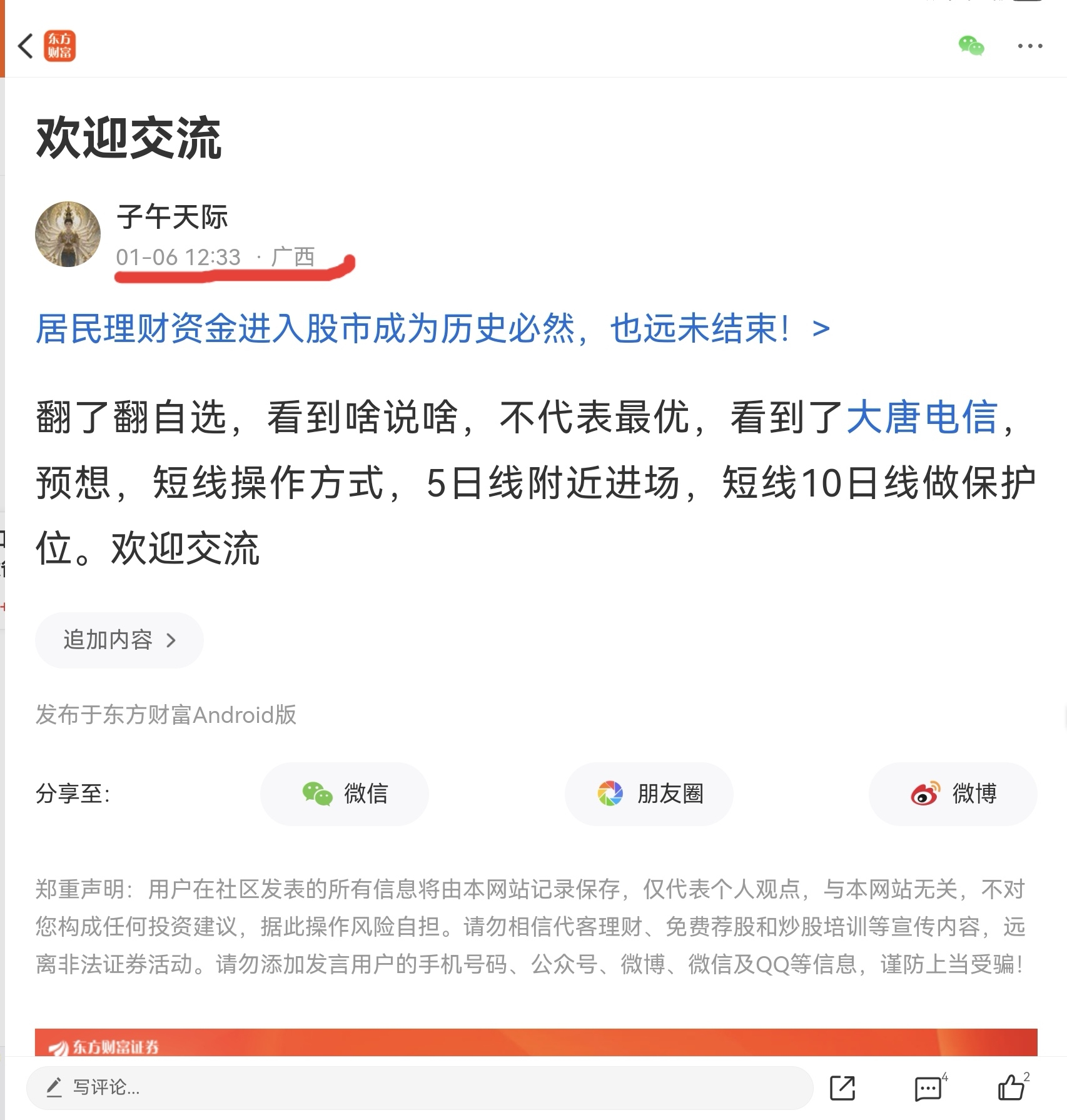 温馨提示: 1.根据《证券法》规定,禁止编造、传播虚假信息或者误导性信息,扰乱证券市场;2.用户在本社区发表的所有资料、言论等仅代表个人观点,与本网站立场无关,不对您构成任何投资建议。用户应基于自己的独立判断,自行决定证券投资并承担相应风险。《东方财富社区管理规定》