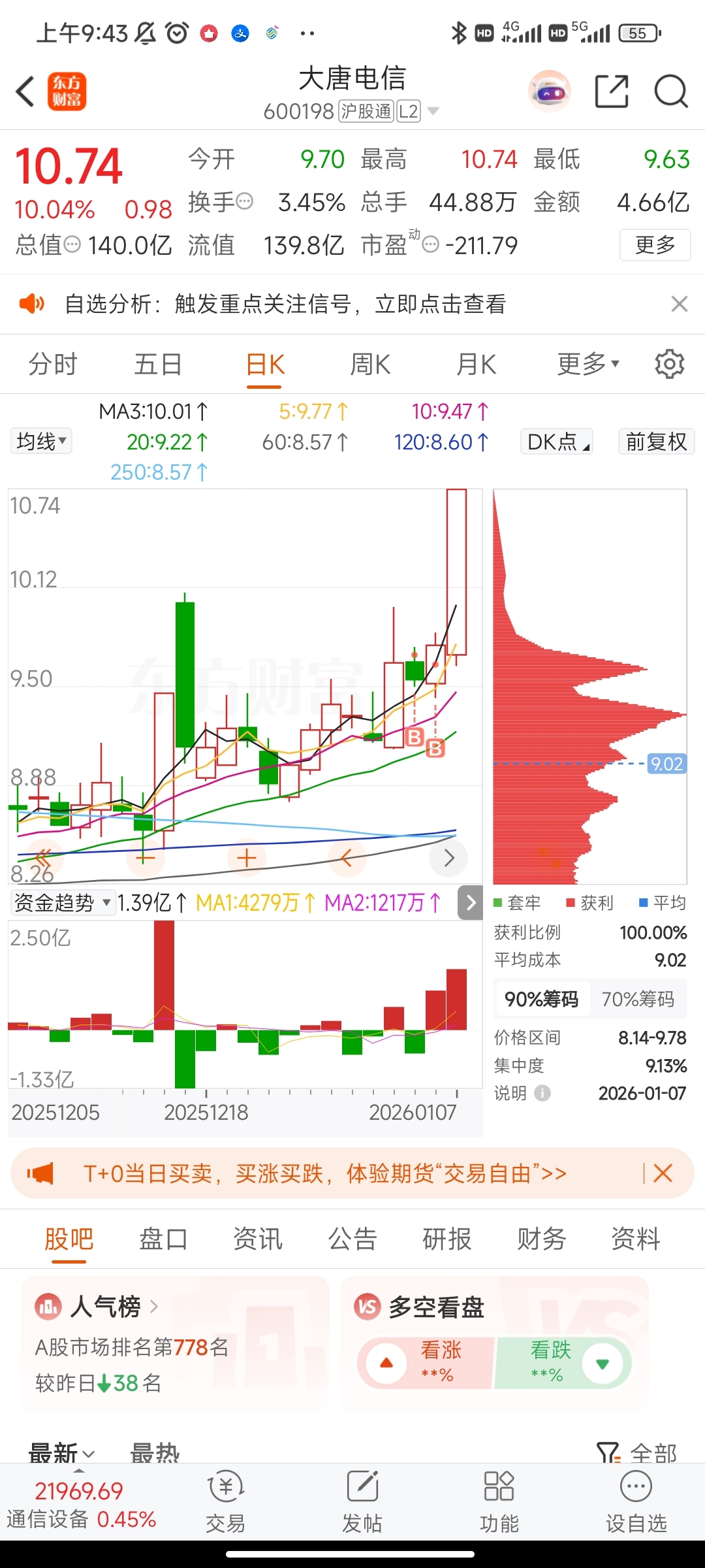 $大唐电信(SH600198)$ 买在无人问津