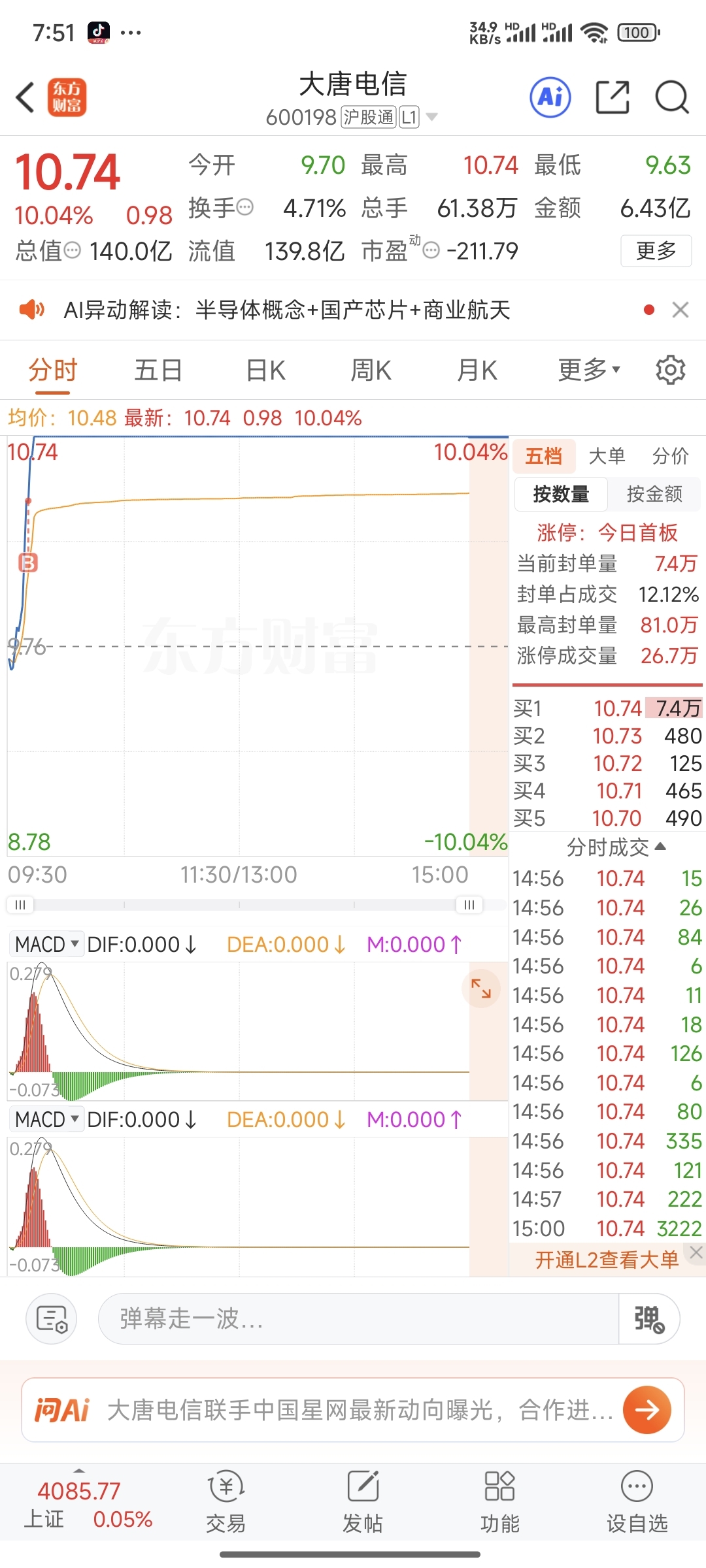 $大唐电信(SH600198)$ 明天高开6个点就跑,这只货照旧惯例会砸到妈都不认