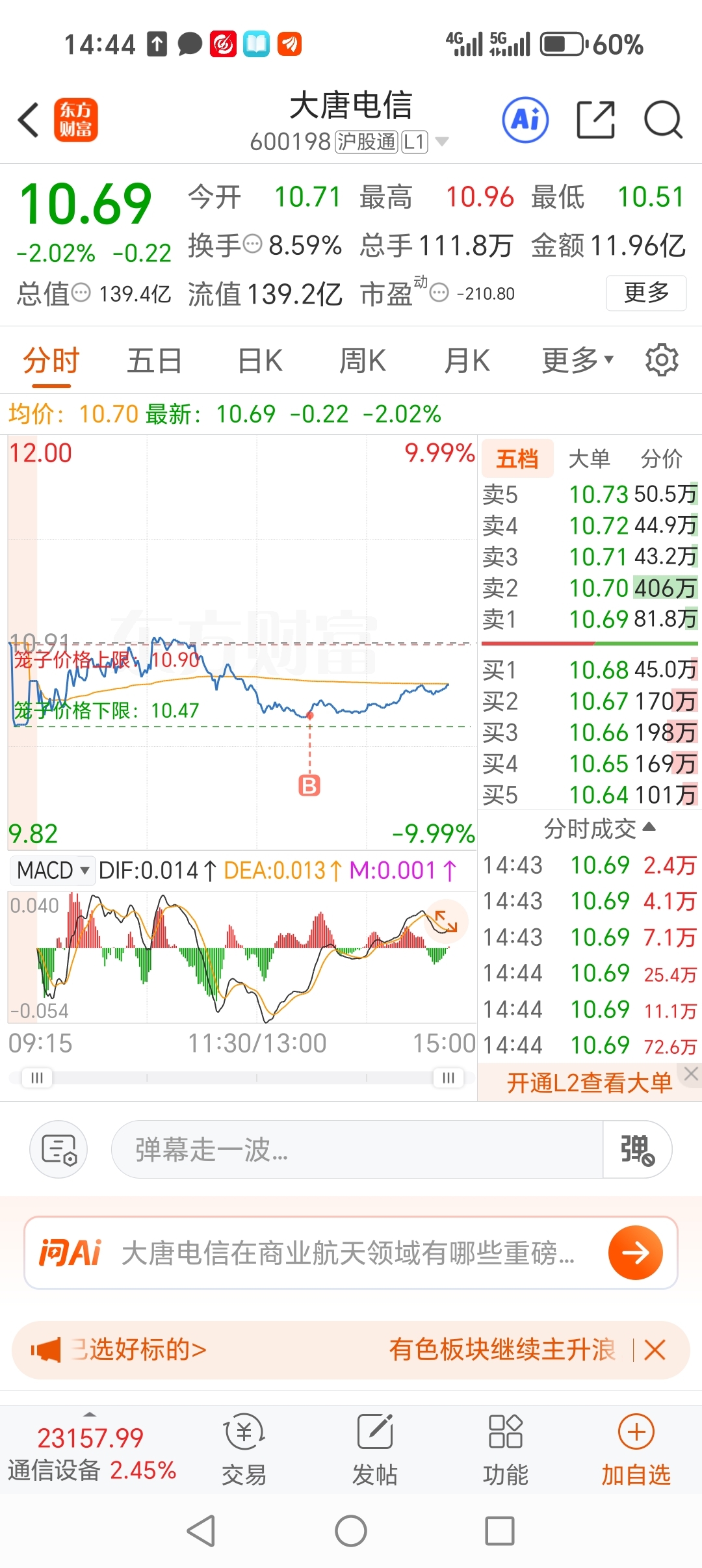 $大唐电信(SH600198)$ 黄龙强势,破不了了