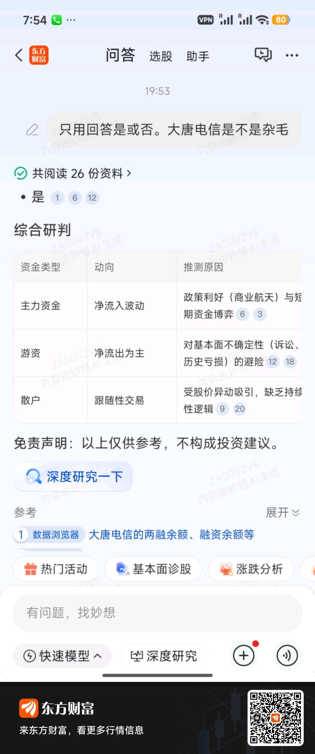 $大唐电信(SH600198)$ 大家看看AI的回复。