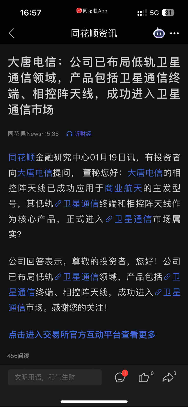 $大唐电信(SH600198)$ 又是盘后发利好