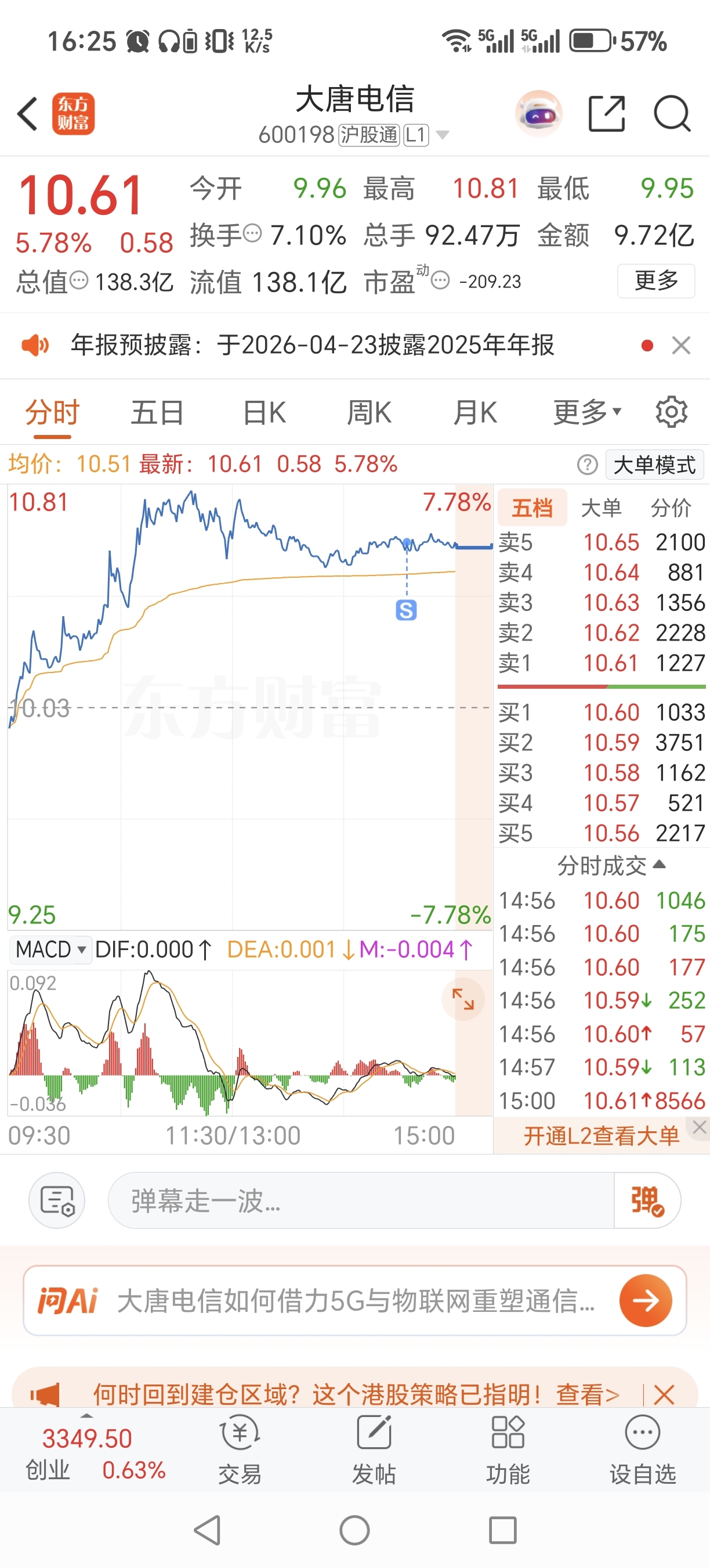$大唐电信(SH600198)$ 恭喜在车上的发大财