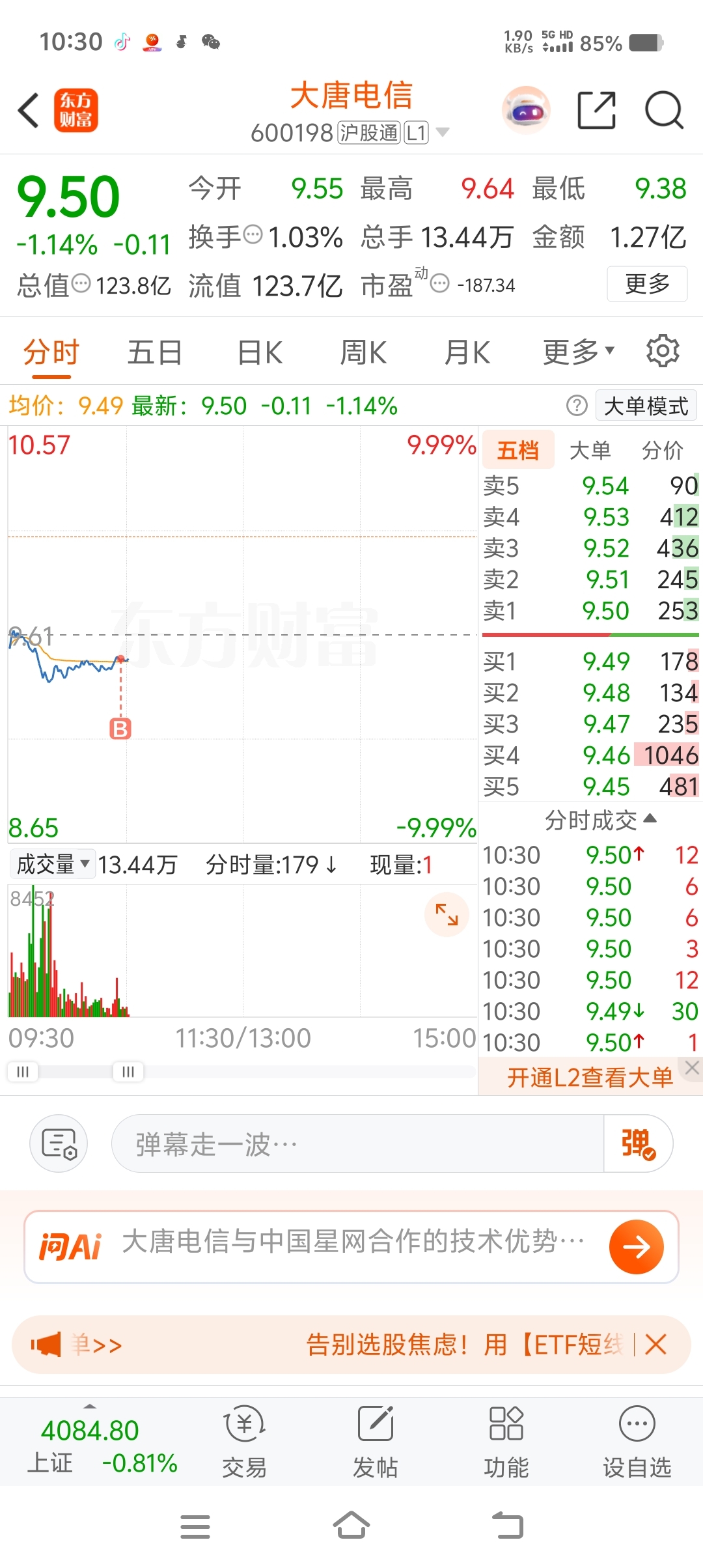$大唐电信(SH600198)$ 越便宜,我越加,谢谢老板