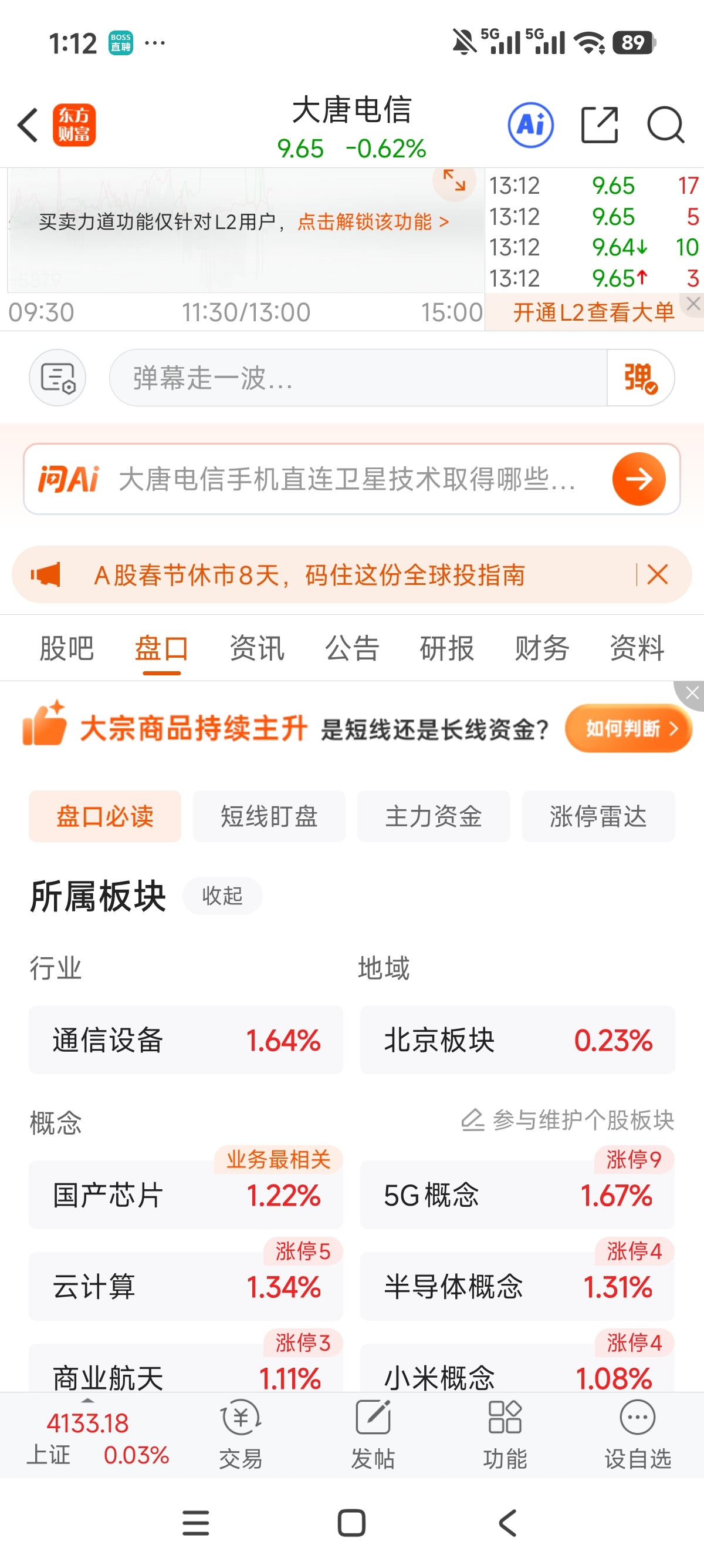 $大唐电信(SH600198)$ 板块红了1.64个点还是绿的