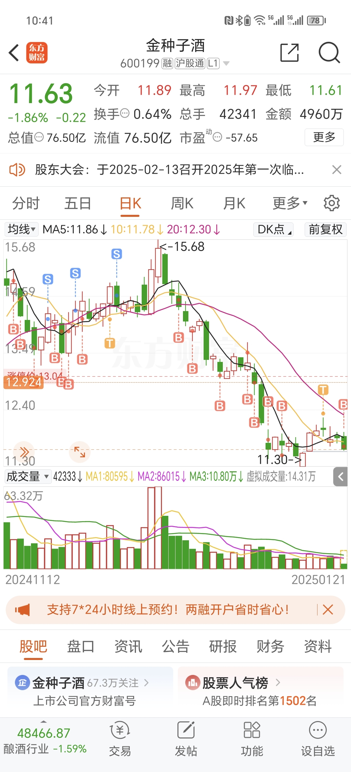 $金种子酒(SH600199)$ 轻仓补成重仓,这。其他票都赚钱卖了全补它了