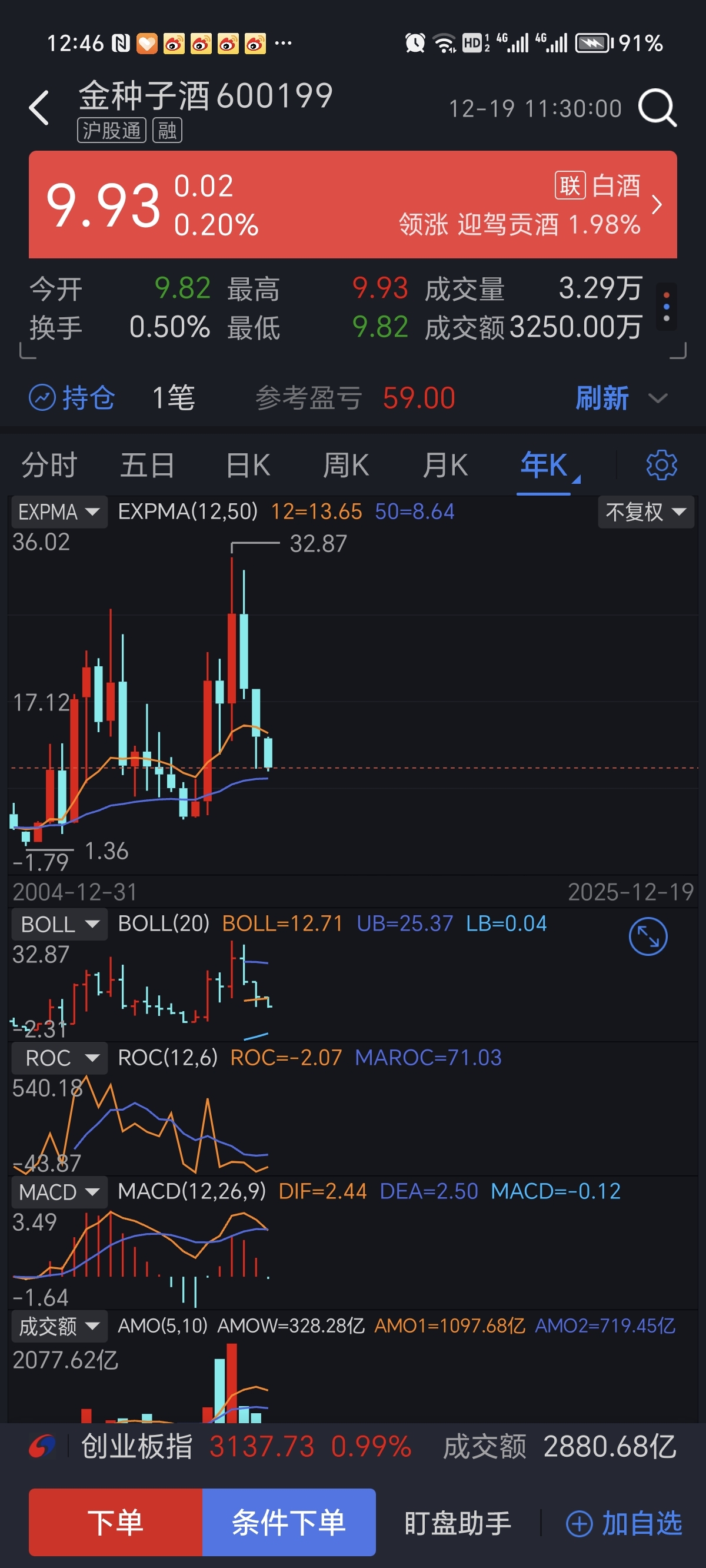 $金种子酒(SH600199)$ 这个位置基本底部我要拿住,
