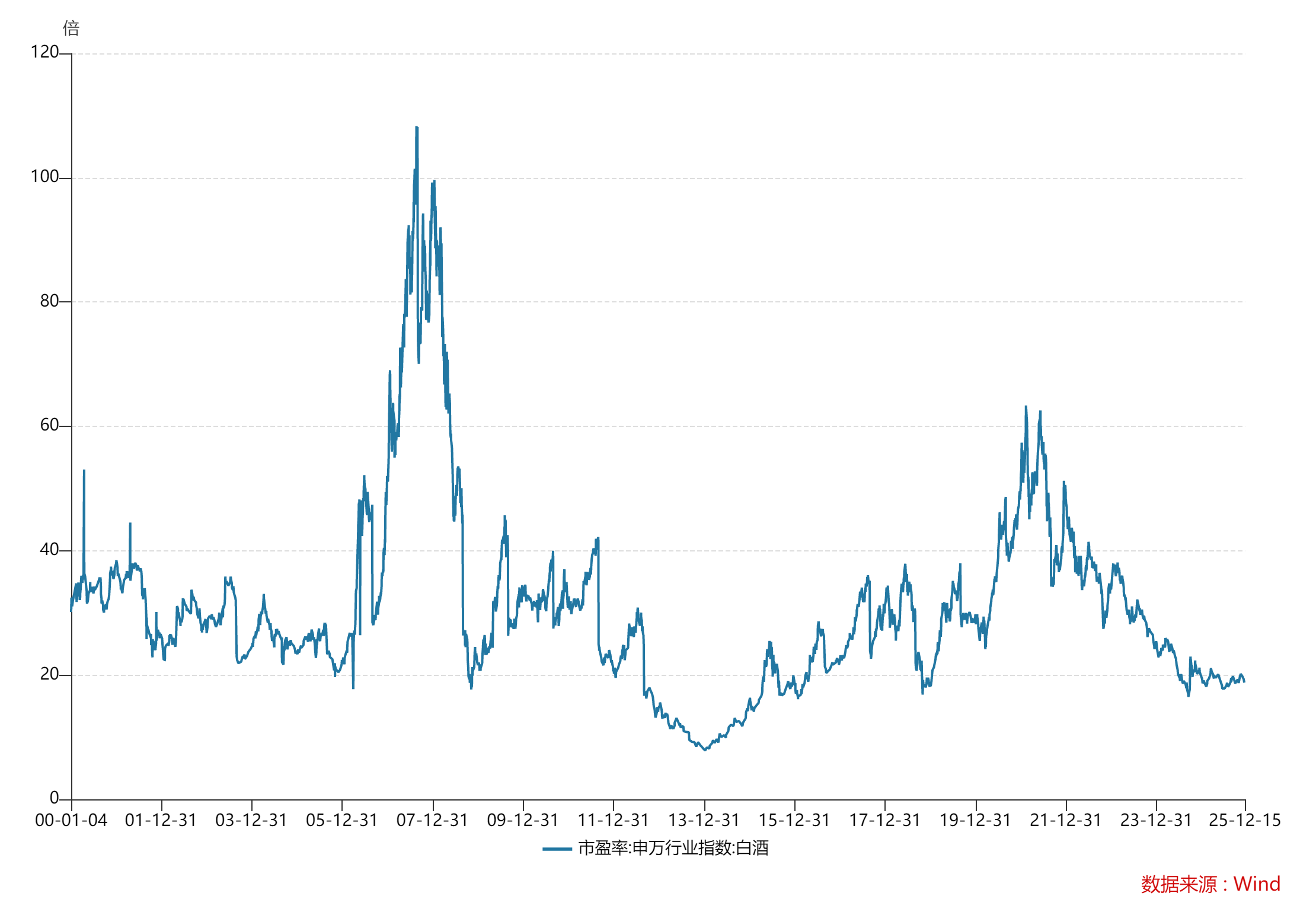 估值层面,白酒板块已具备明确的安全边际。截至2025年12月15日,申万白酒指数对应市盈率为19.05倍,接近2018年低点水平。