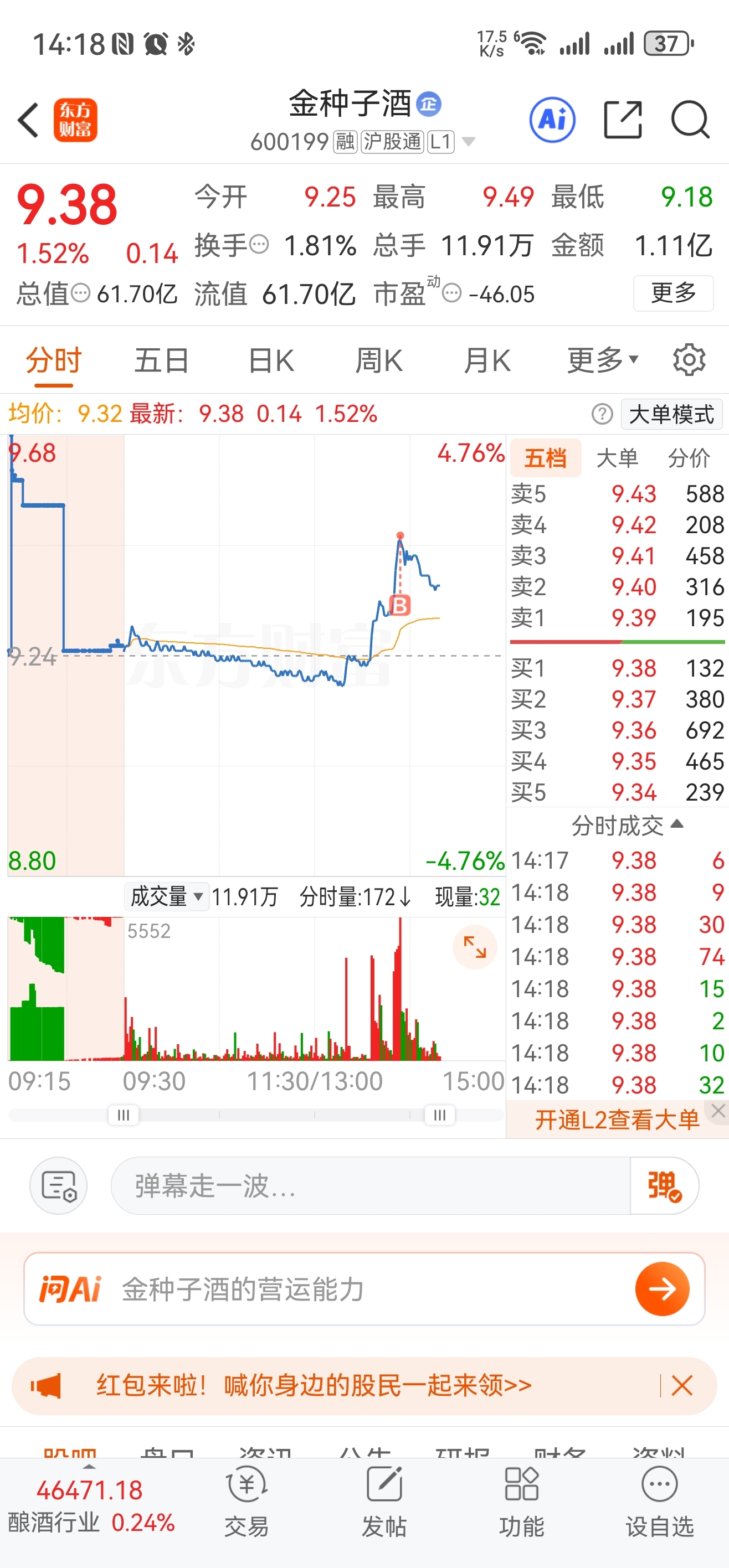 $金种子酒(SH600199)$ 以为要启动了,又被骗在了山顶
