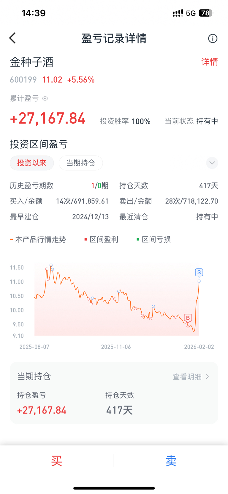 $金种子酒(SH600199)$ 套了几百天,终于出来了