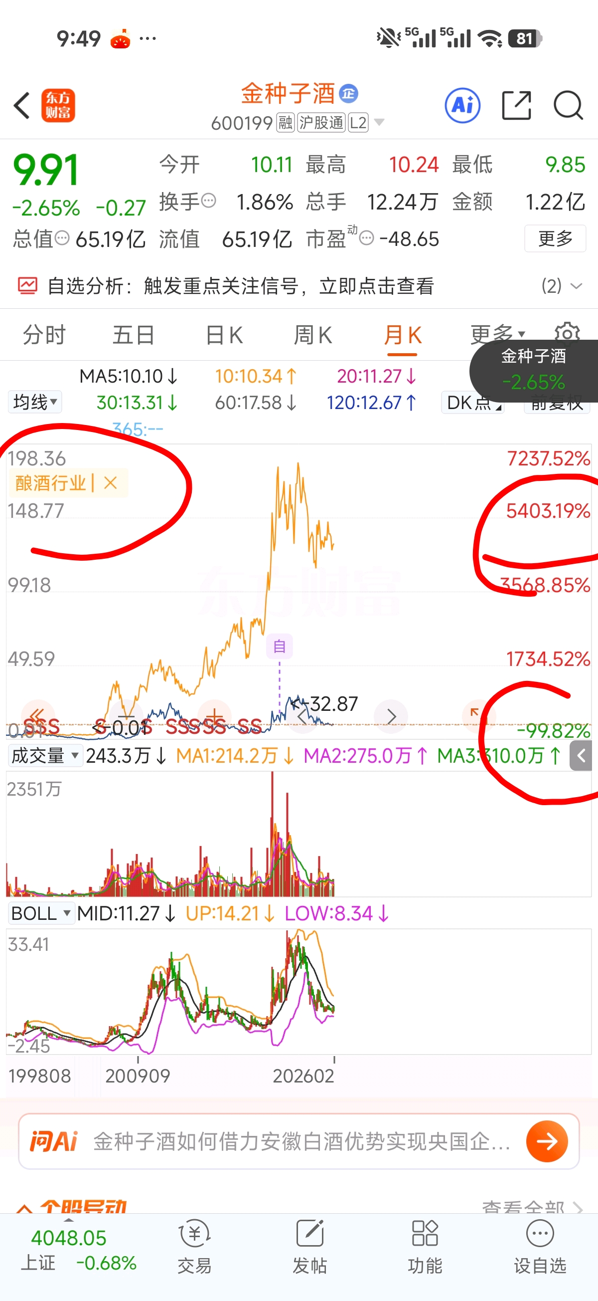 $金种子酒(SH600199)$ 这些年和板块的差距这数字我看的都怕。。。