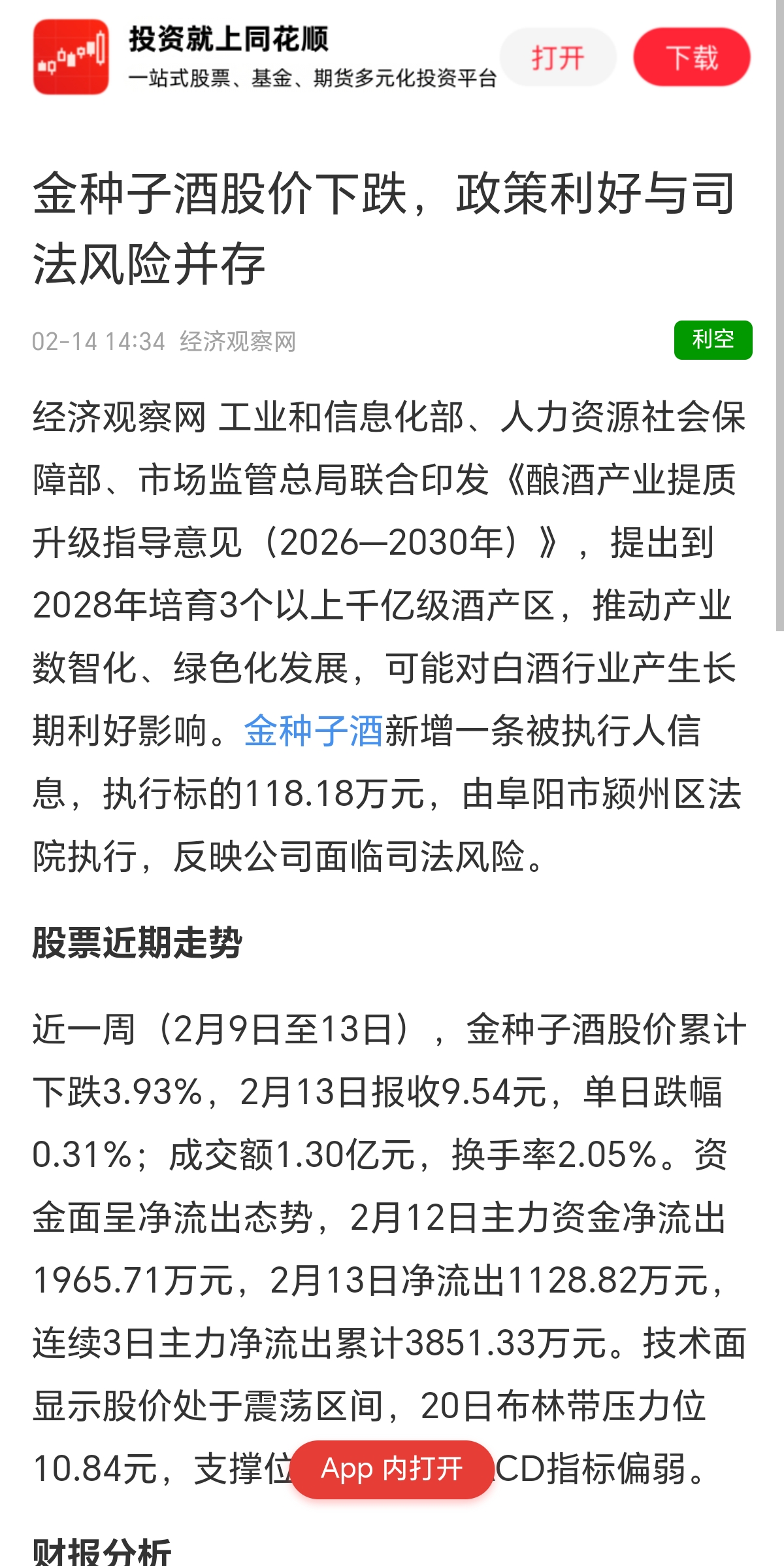$金种子酒(SH600199)$