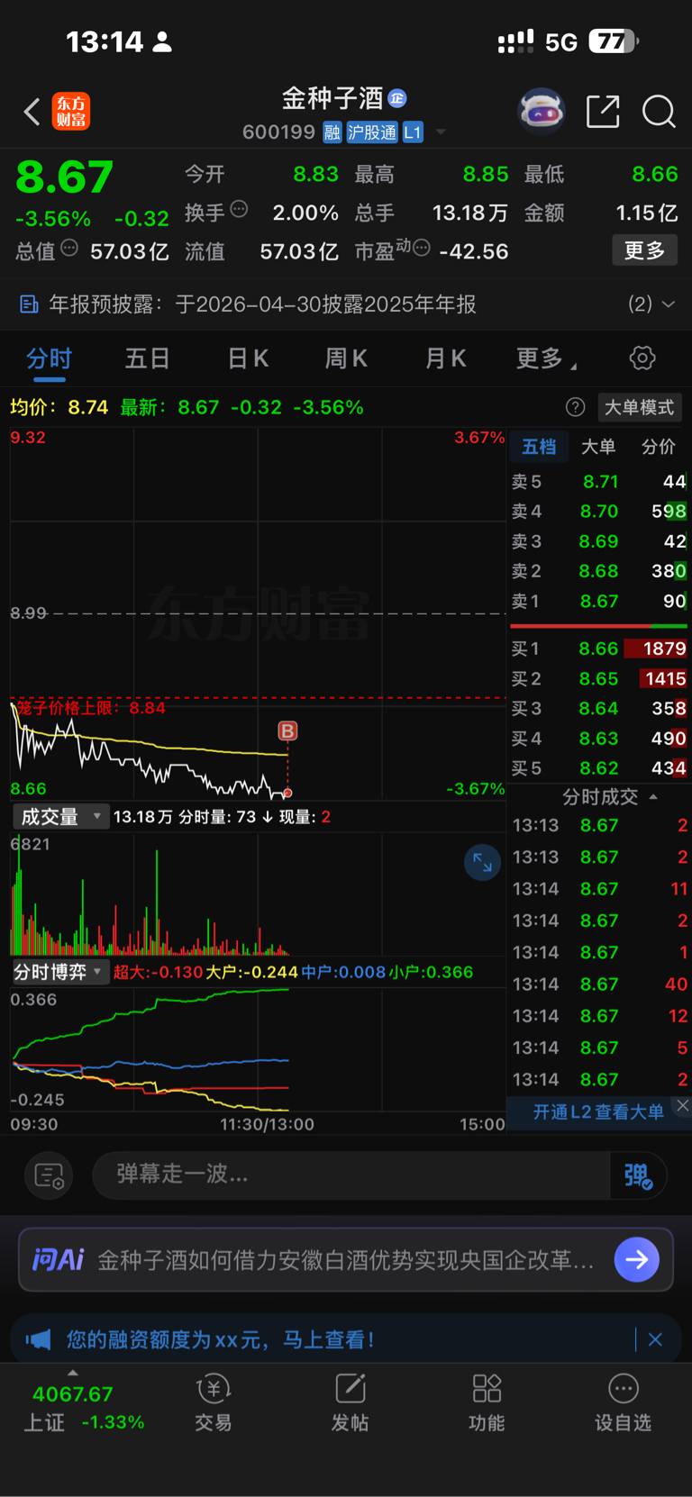 $金种子酒(SH600199)$ 不想说话就是加仓