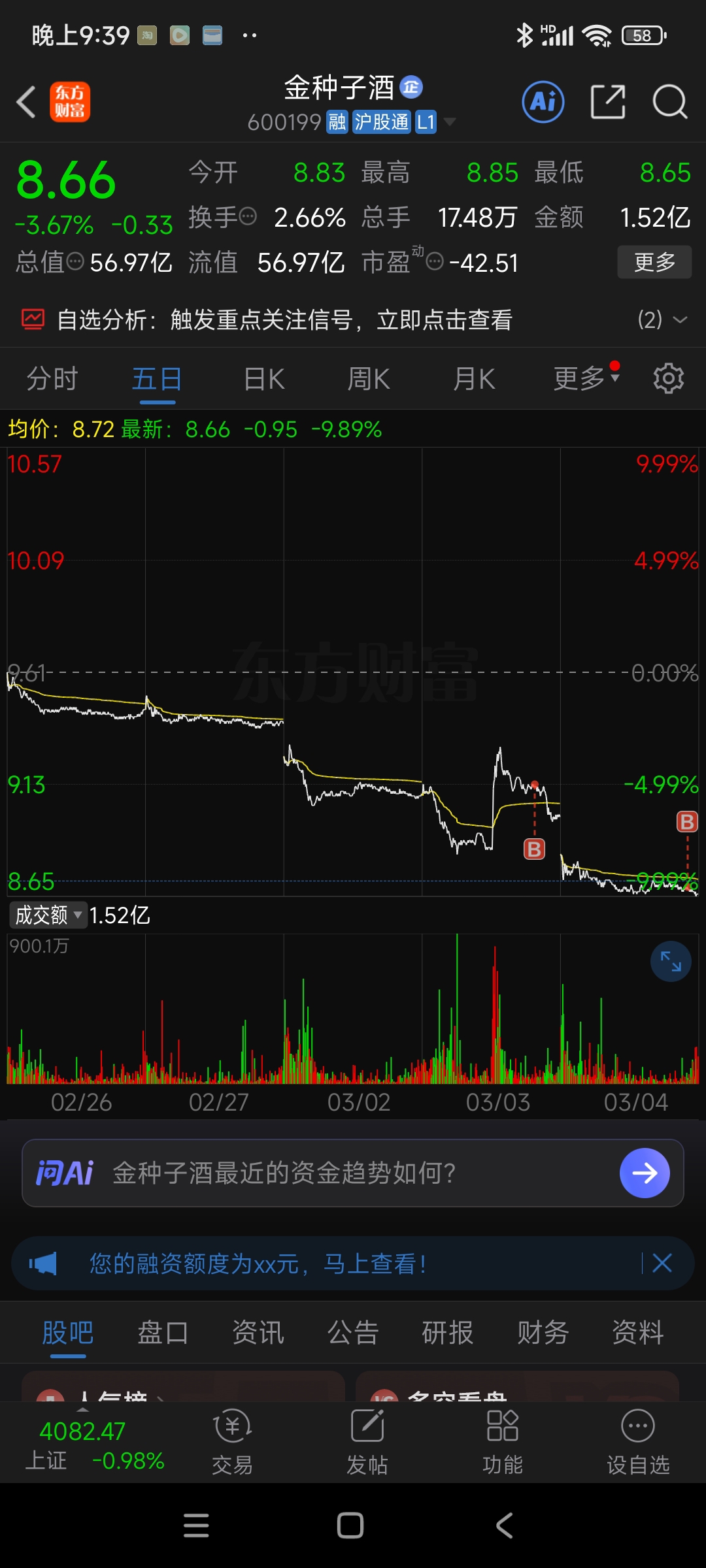 $金种子酒(SH600199)$ 昨天试盘,今天又顺势下跌,明天就满血复活,这个价位不至于悲观!