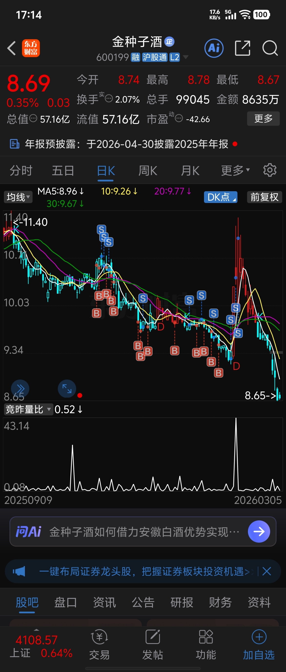 $金种子酒(SH600199)$ 今天回头一看,还好跑了;瑟瑟发抖啊~