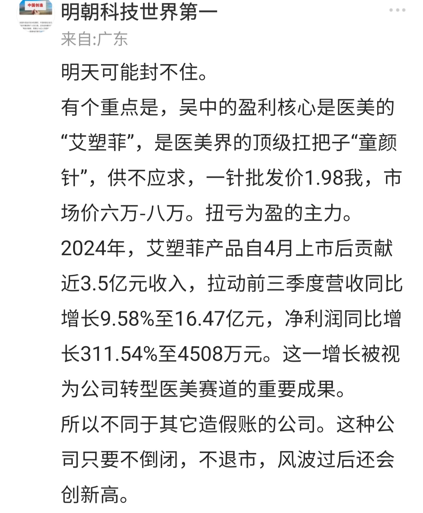 郑重声明:用户在财富号/股吧/博客等社区发表的所有信息(包括但不限于文字、视频、音频、数据及图表)仅代表个人观点,与本网站立场无关,不对您构成任何投资建议,据此操作风险自担。请勿相信代客理财、免费荐股和炒股培训等宣传内容,远离非法证券活动。请勿添加发言用户的手机号码、公众号、微博、微信及QQ等信息,谨防上当受骗!