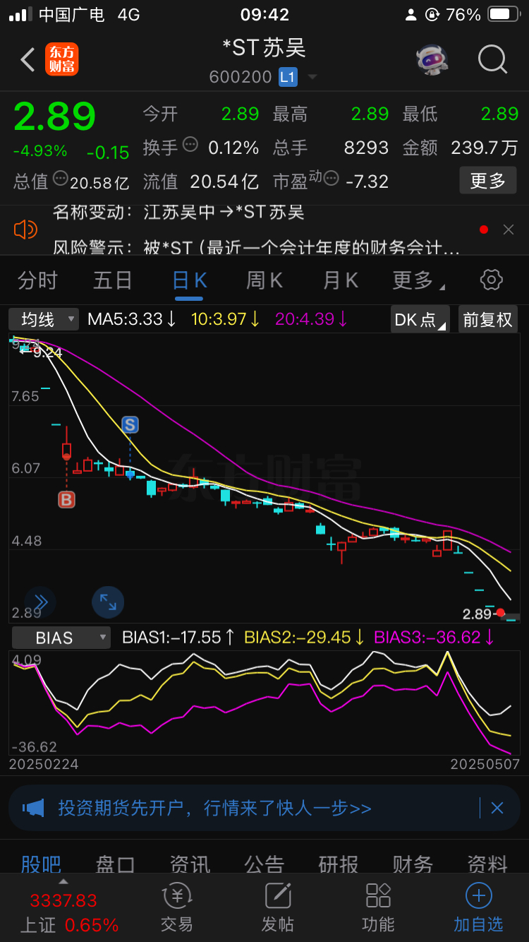 $*ST苏吴(SH600200)$ 回头一看瑟瑟发抖