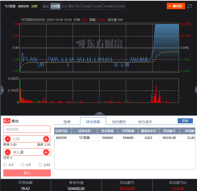 600200 昨天今天两个涨停了,今收盘1.00元,准备起飞。