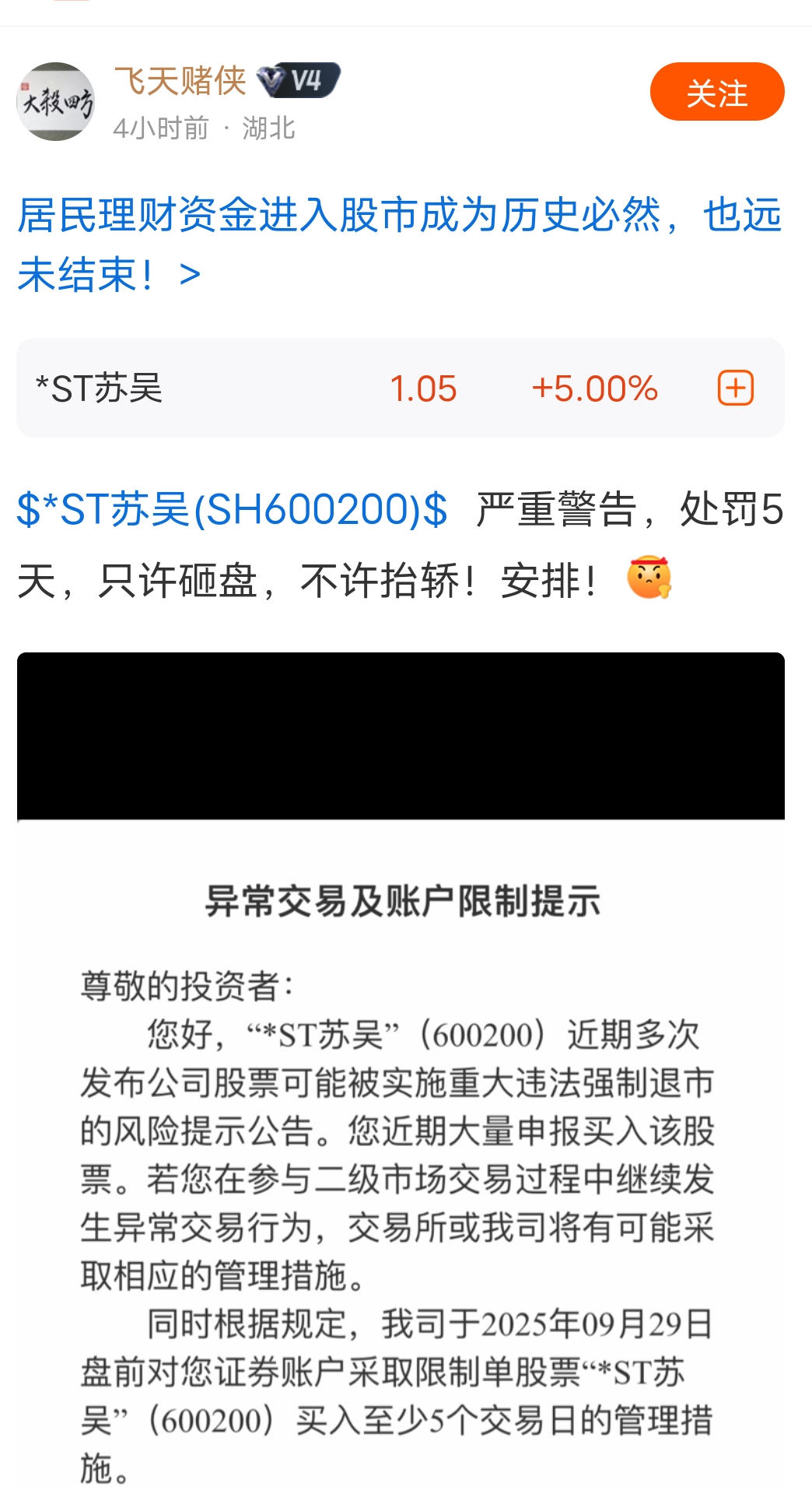 $*ST苏吴(SH600200)$ 大家动动发财的小手投诉他专门造遥。他不是第一次造遥了,上次被投诉还写了保证书。他上次害人1.5把东方园林全部卖掉了。