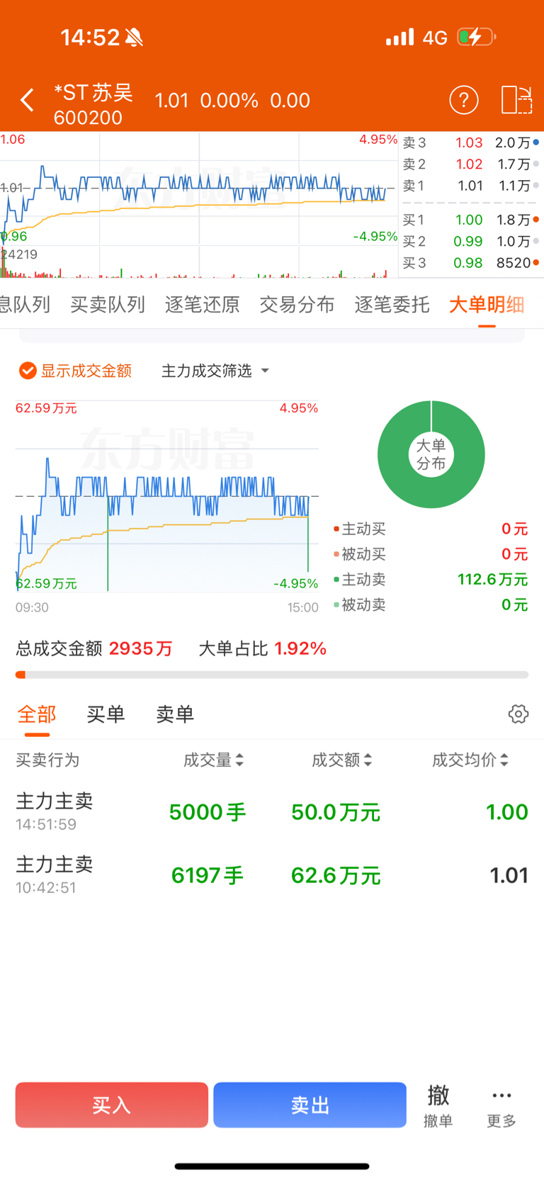 $*ST苏吴(SH600200)$ 这样的操作你还敢买嘛