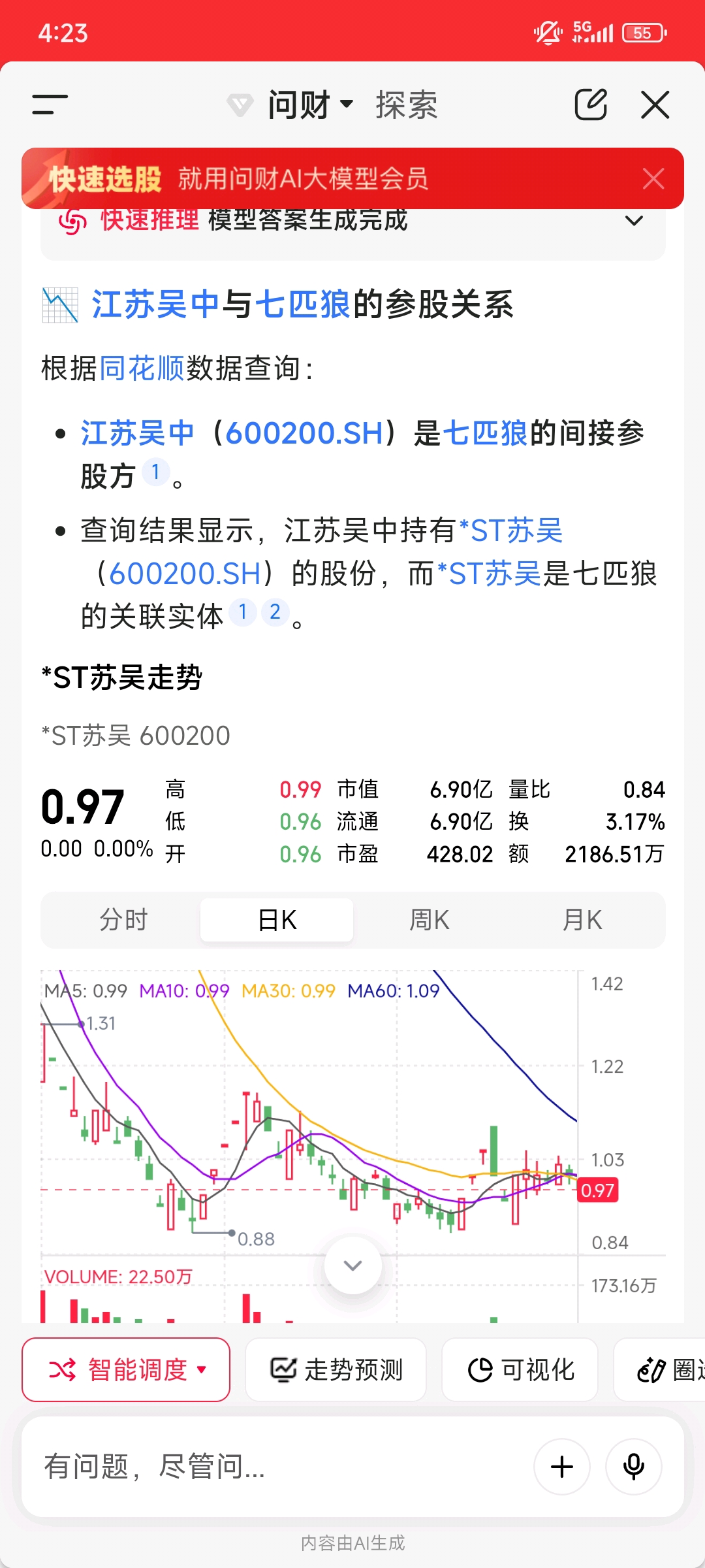 $*ST苏吴(SH600200)$ 兄弟们,同花顺说的是真的么?苏吴间接参股七匹狼?