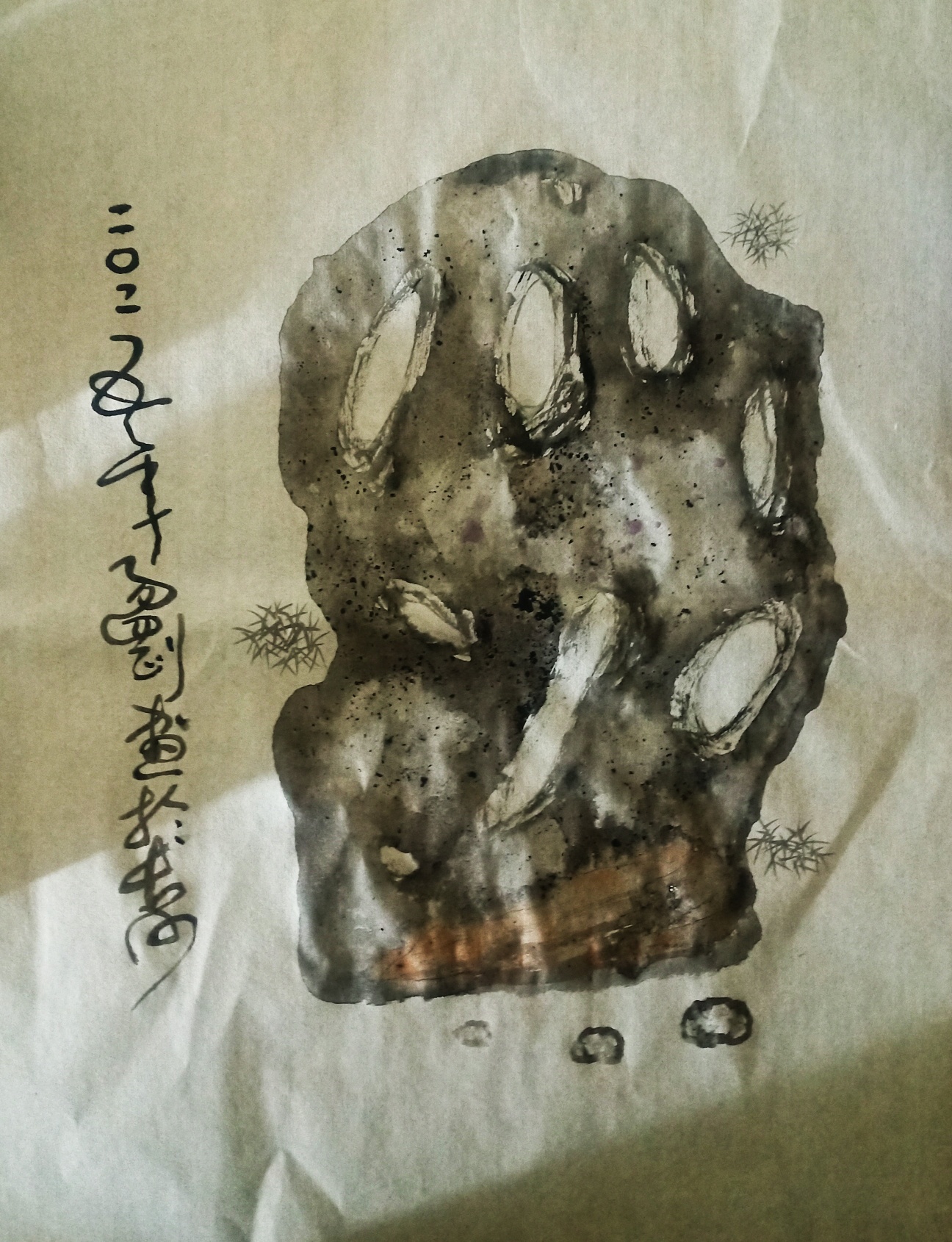 墨倒在纸上形成,命题《海枯石烂》。艺术和炒股是同一样,我把字写丑,画也抽象丑化,