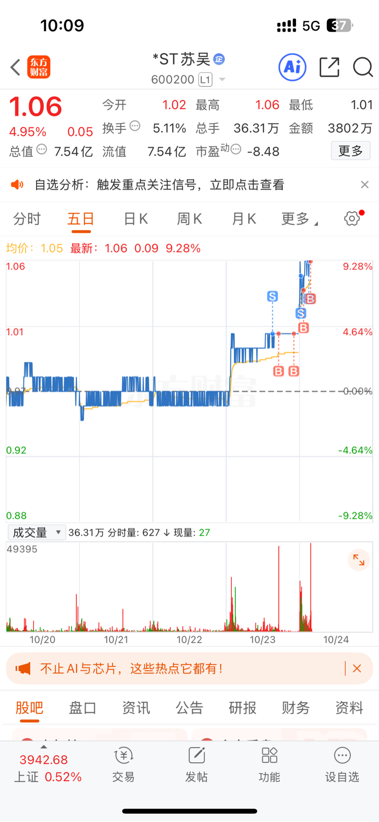 $*ST苏吴(SH600200)$ 看情况不对就跑,