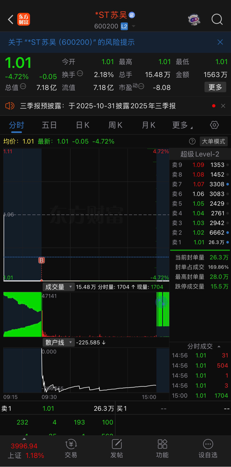 $*ST苏吴(SH600200)$ 用利润买了10手,我这是不是打水漂了啊