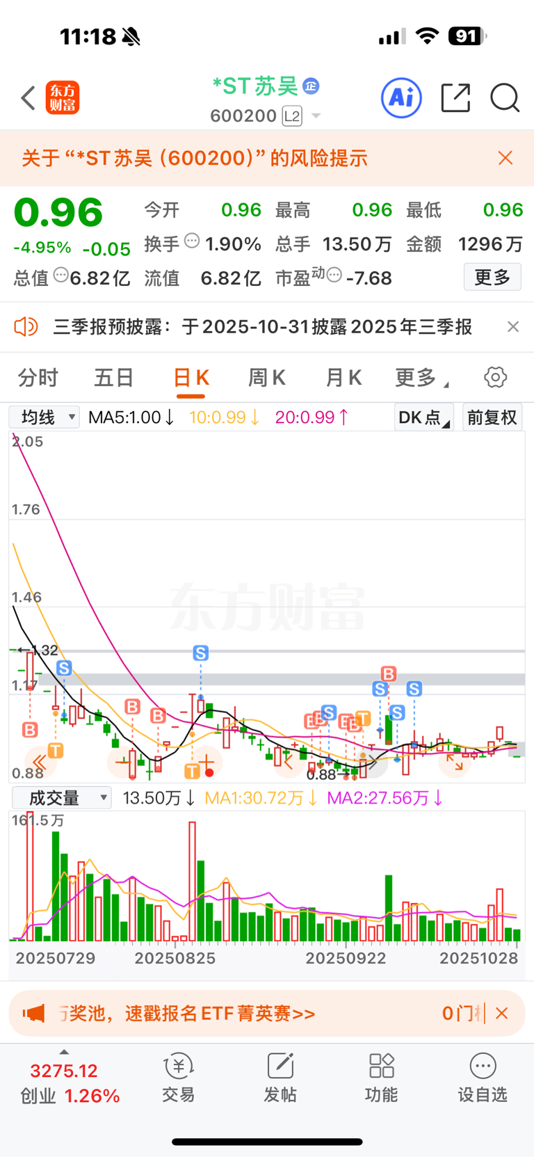 $*ST苏吴(SH600200)$ 目前这个情况,什么时候可以进家人们