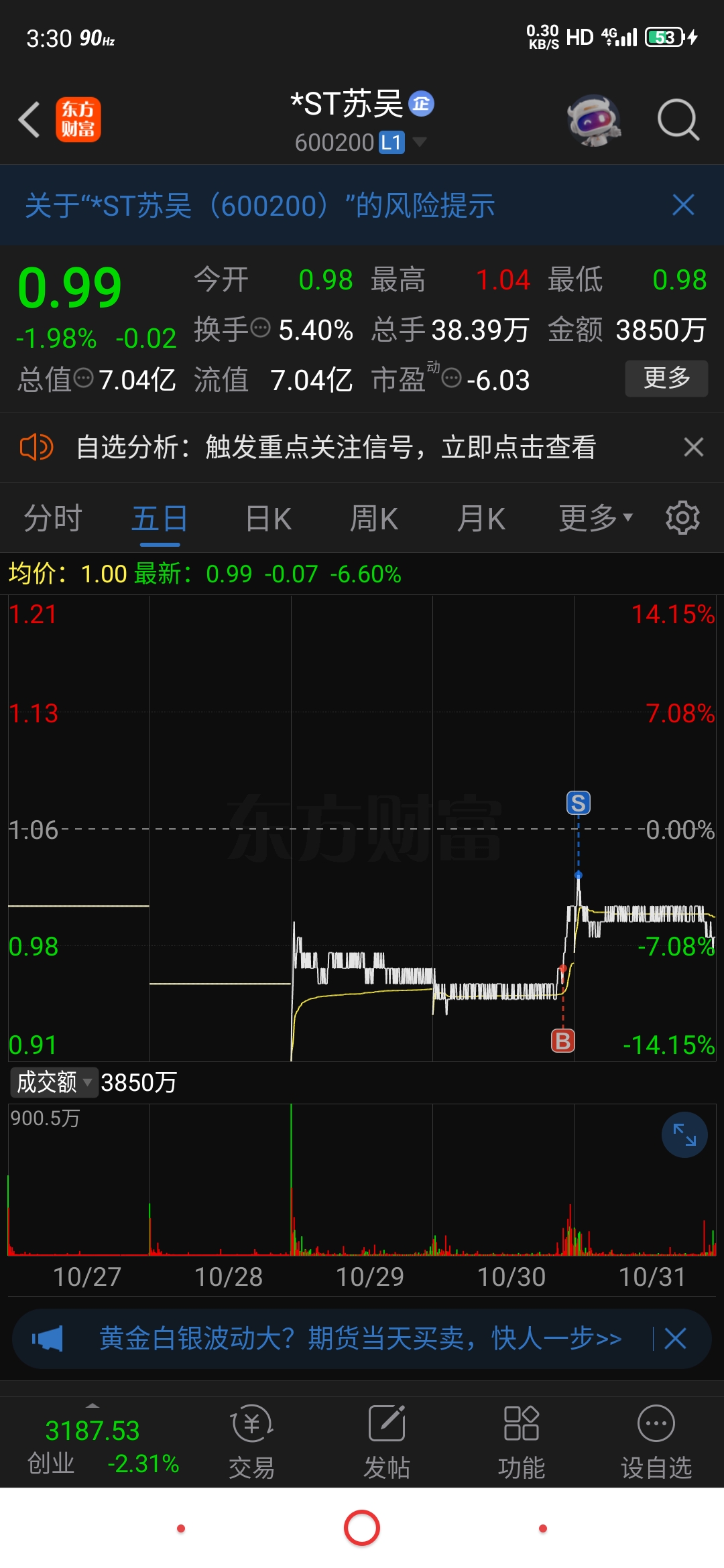 $*ST苏吴(SH600200)$  成功把我洗掉了!